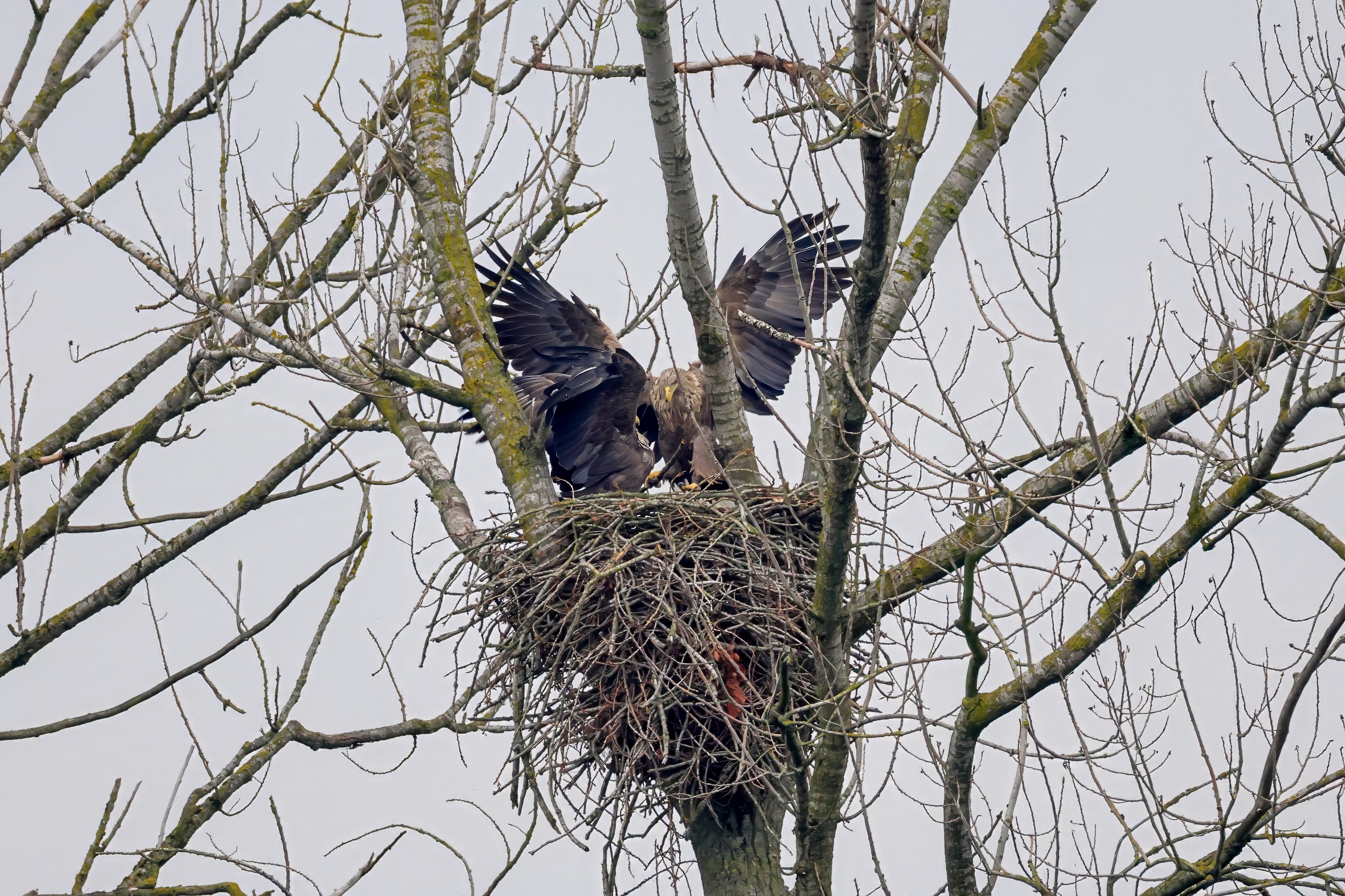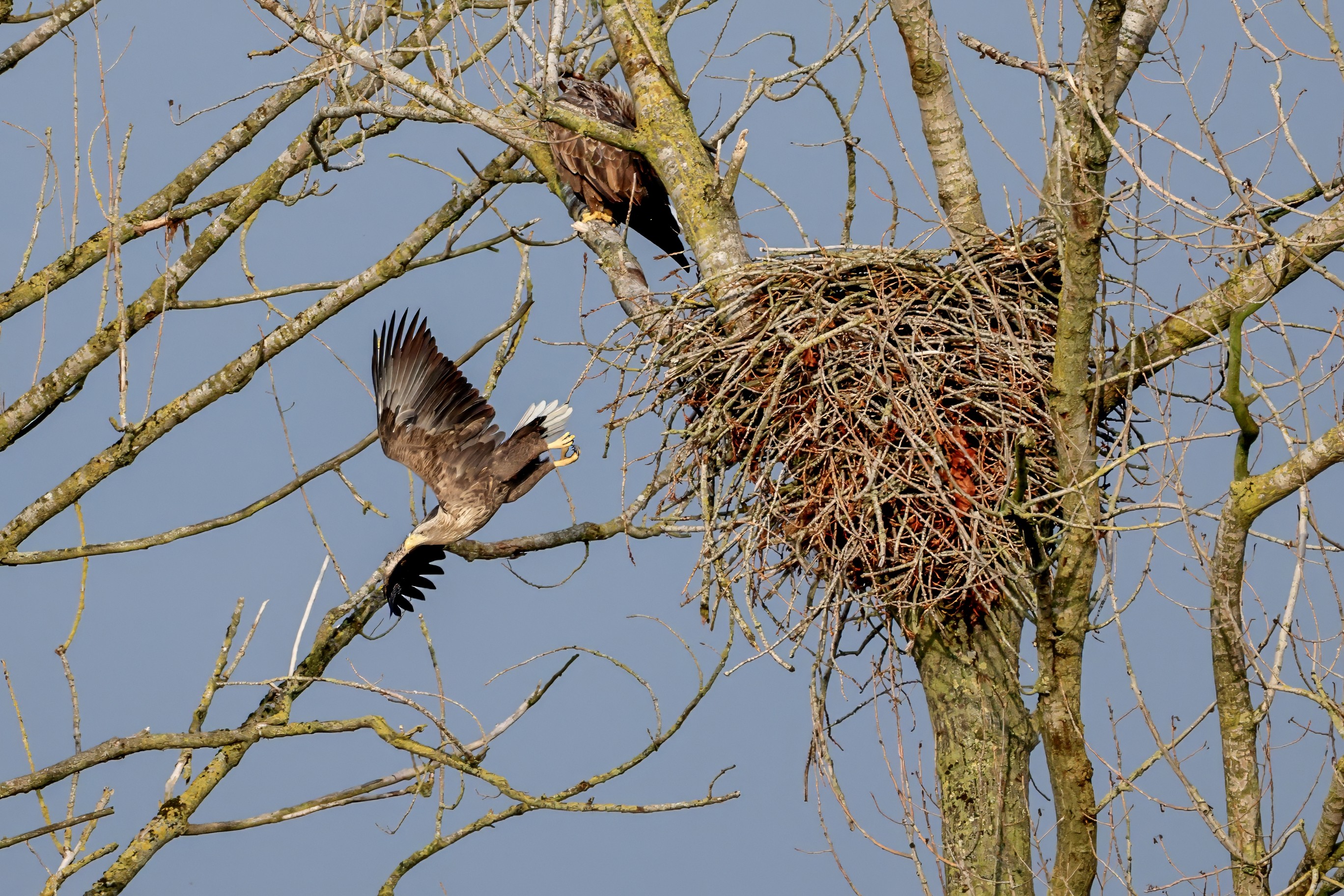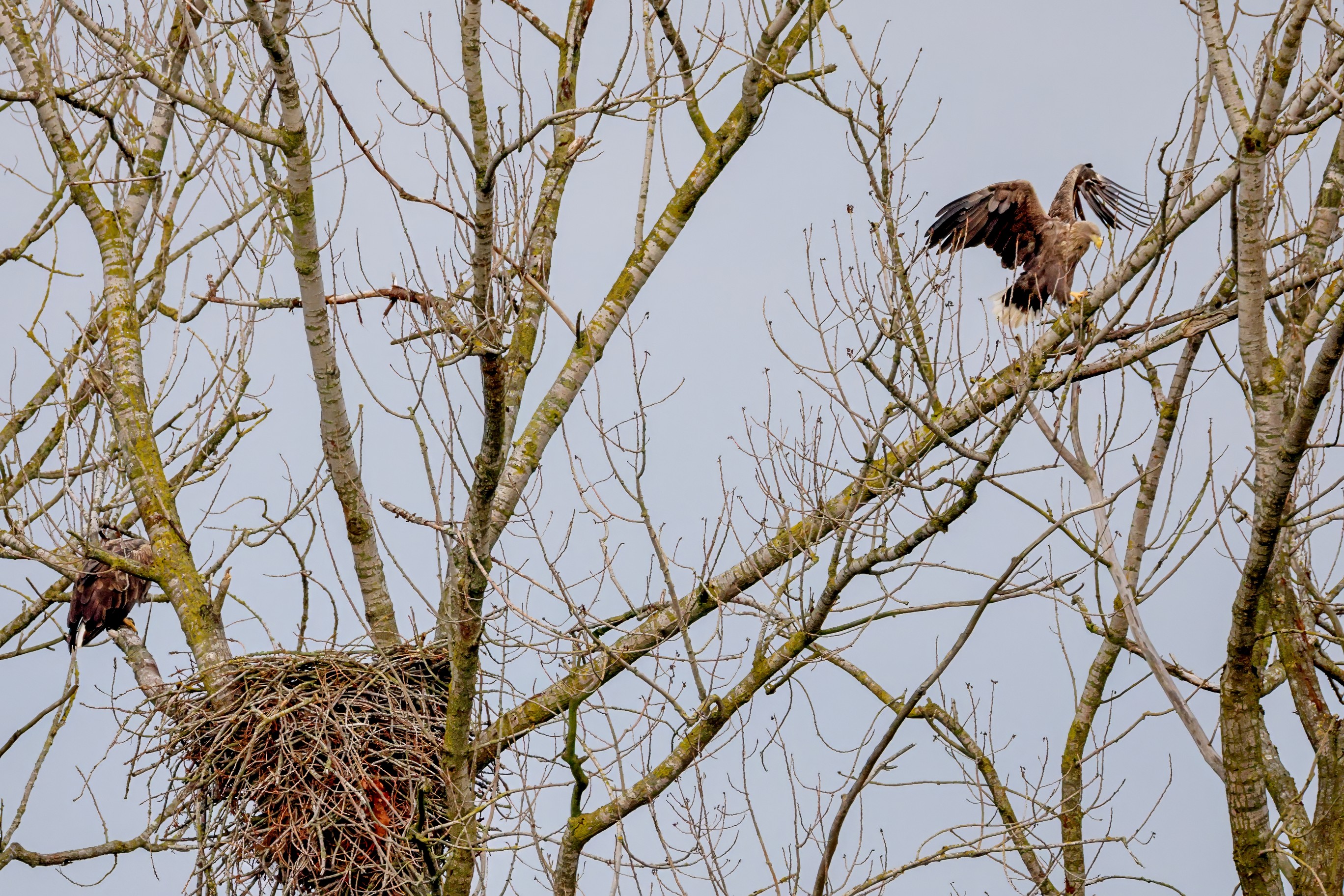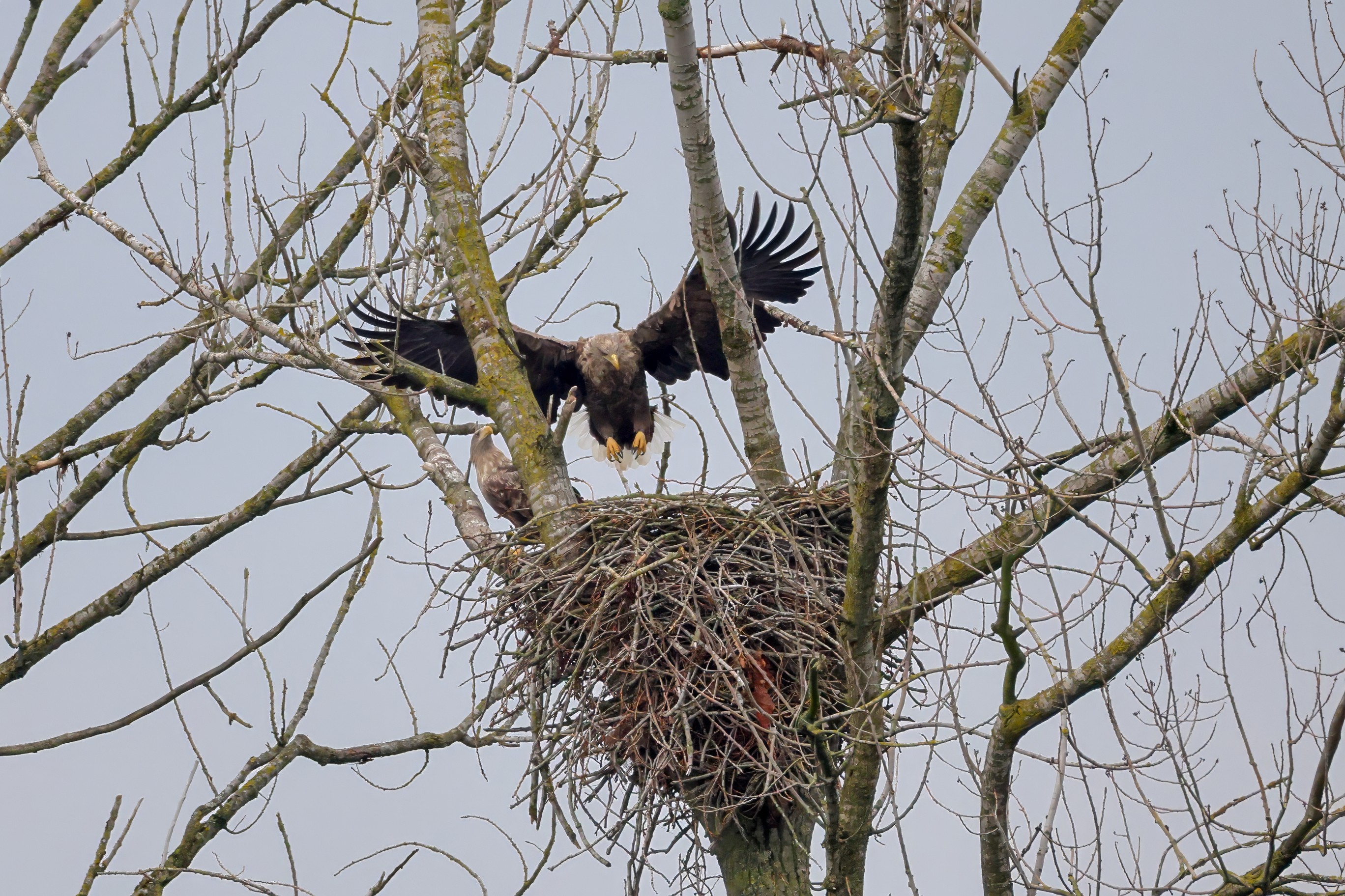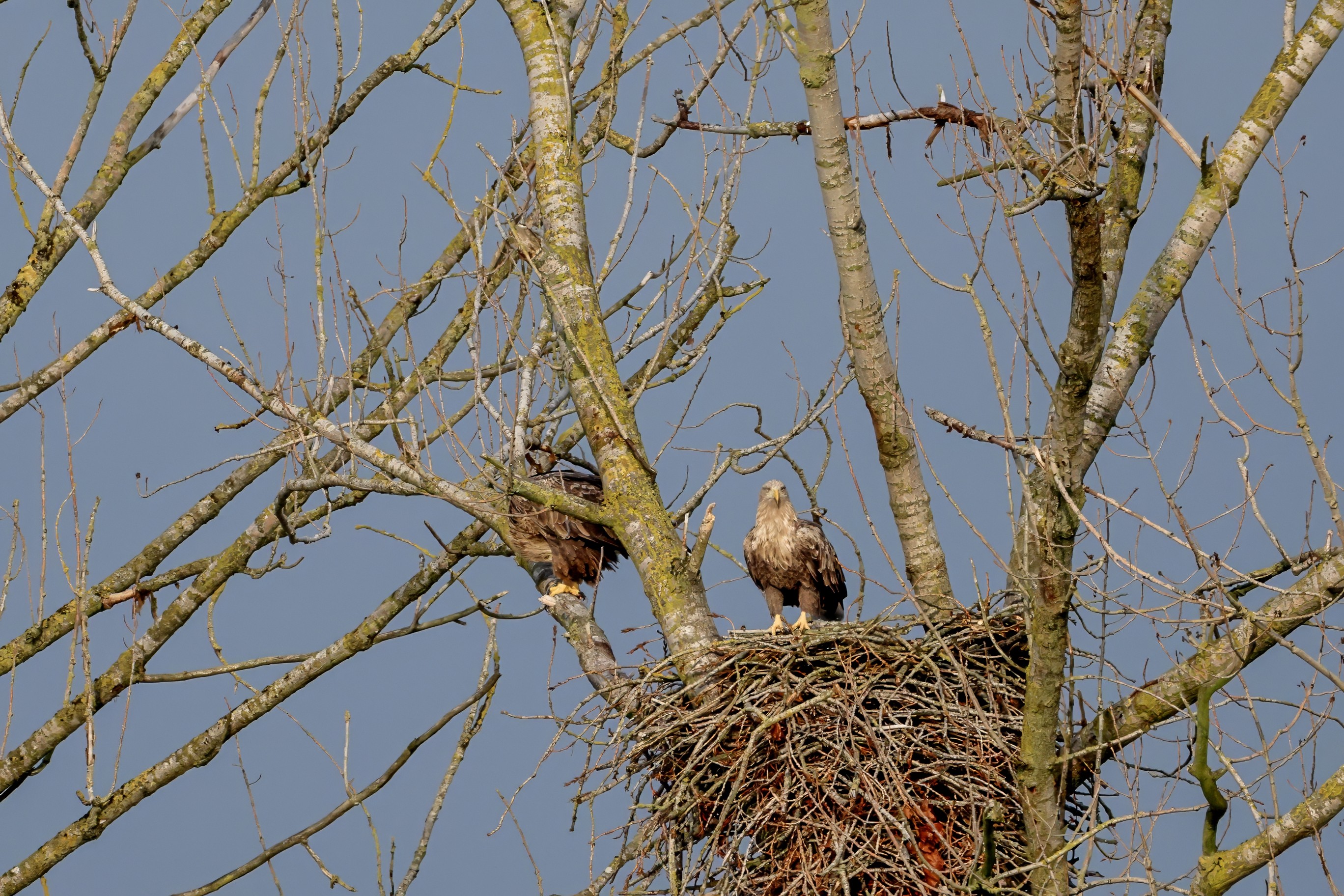 Währenddessen zeigen die adulten Seeadler im November eindrucksvoll ihre feste Partnerschaft. Gemeinsam arbeiten sie bereits an der Ausbesserung ihres Horstes – eine sorgfältige Vorbereitung auf das kommende Jahr.