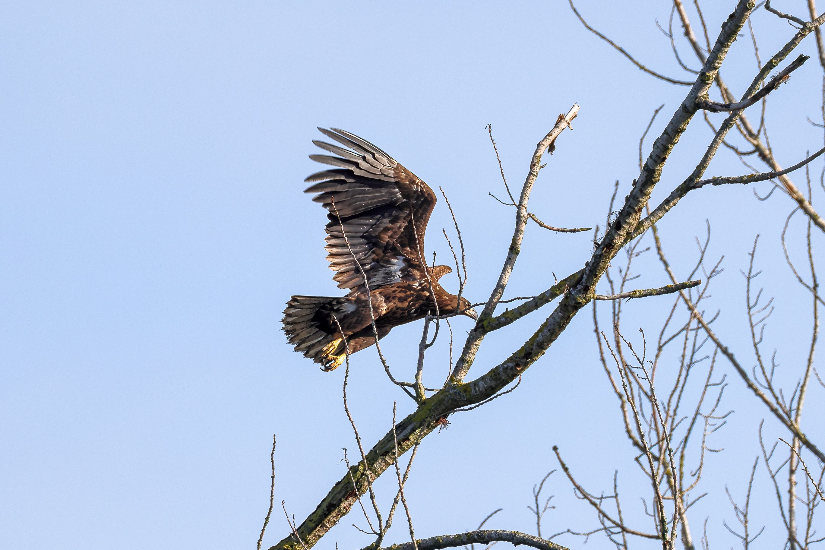 Nur selten lassen sich die jungen Seeadler in ihrem angestammten Revier blicken. Nachdem die elterliche Fürsorge beendet ist, beginnt für sie eine neue Lebensphase: die große Reise, die mehrere Jahre dauern wird, bis sie zu adulten Seeadlern herangereift sind. Dieser natürliche Prozess gehört zum Lebenszyklus aller Jungseeadler.
