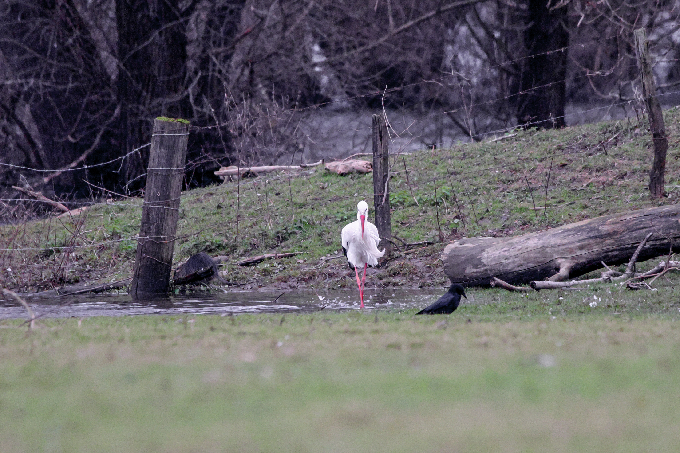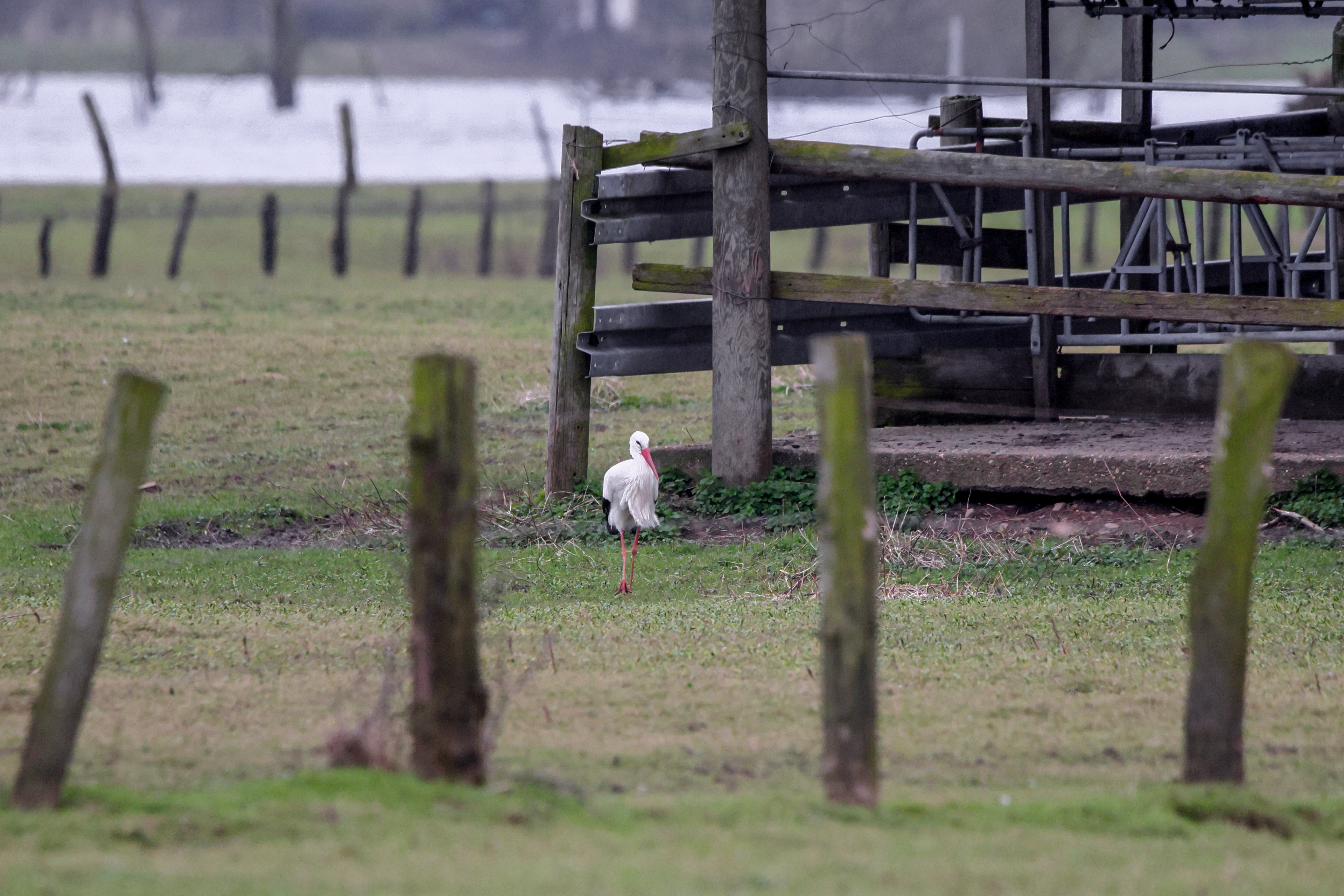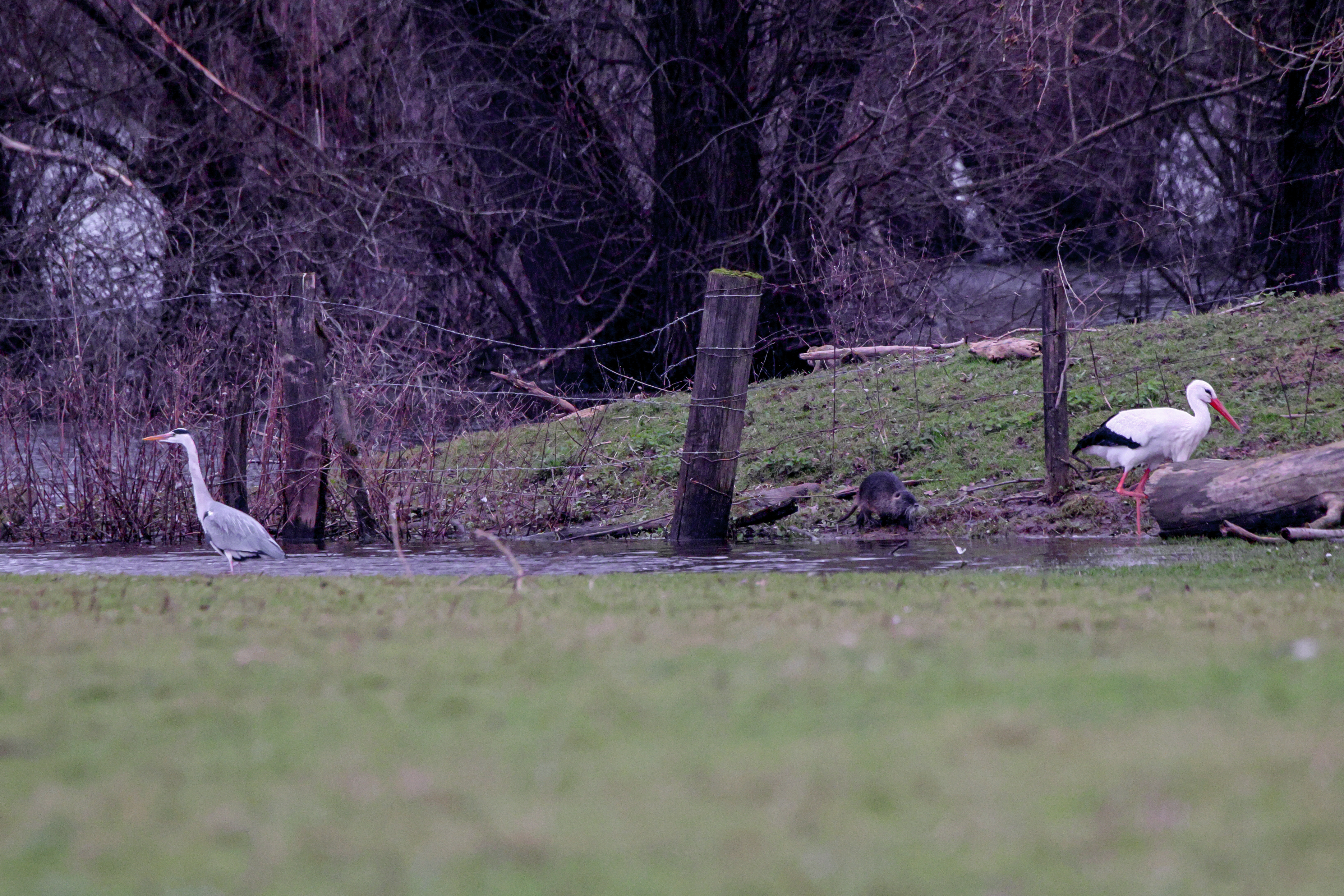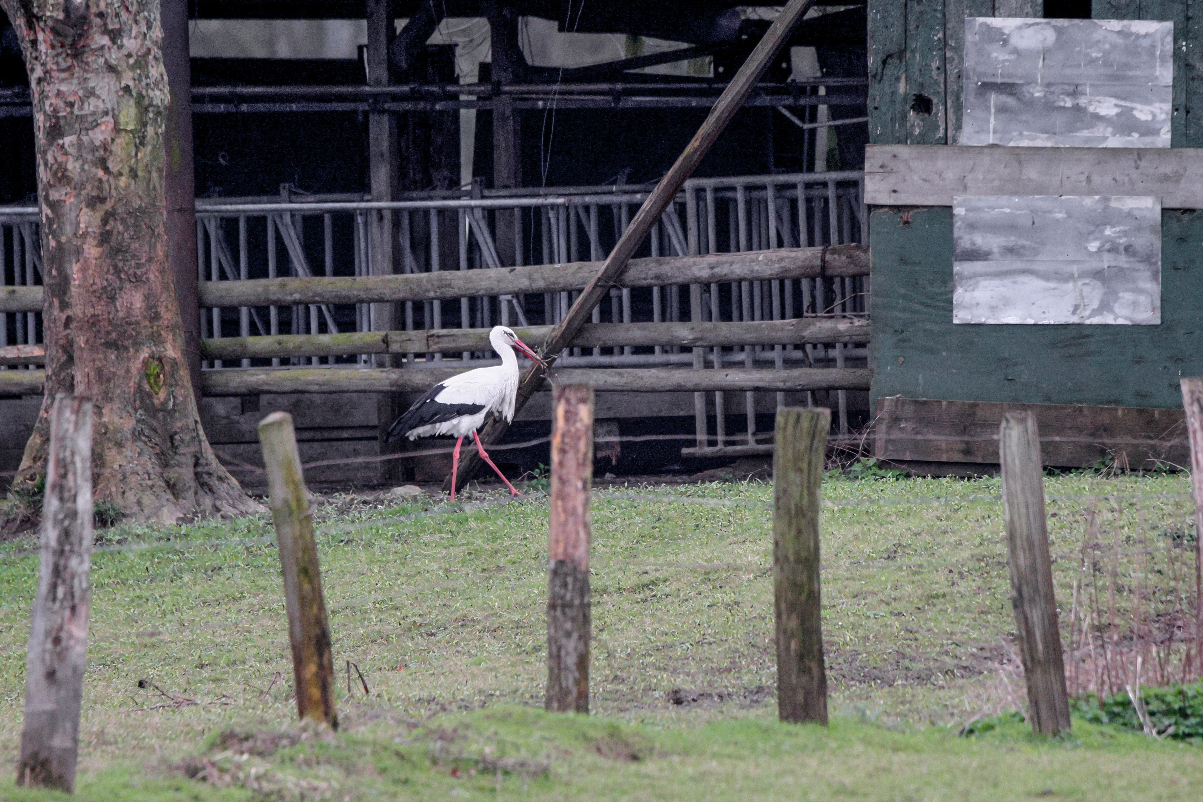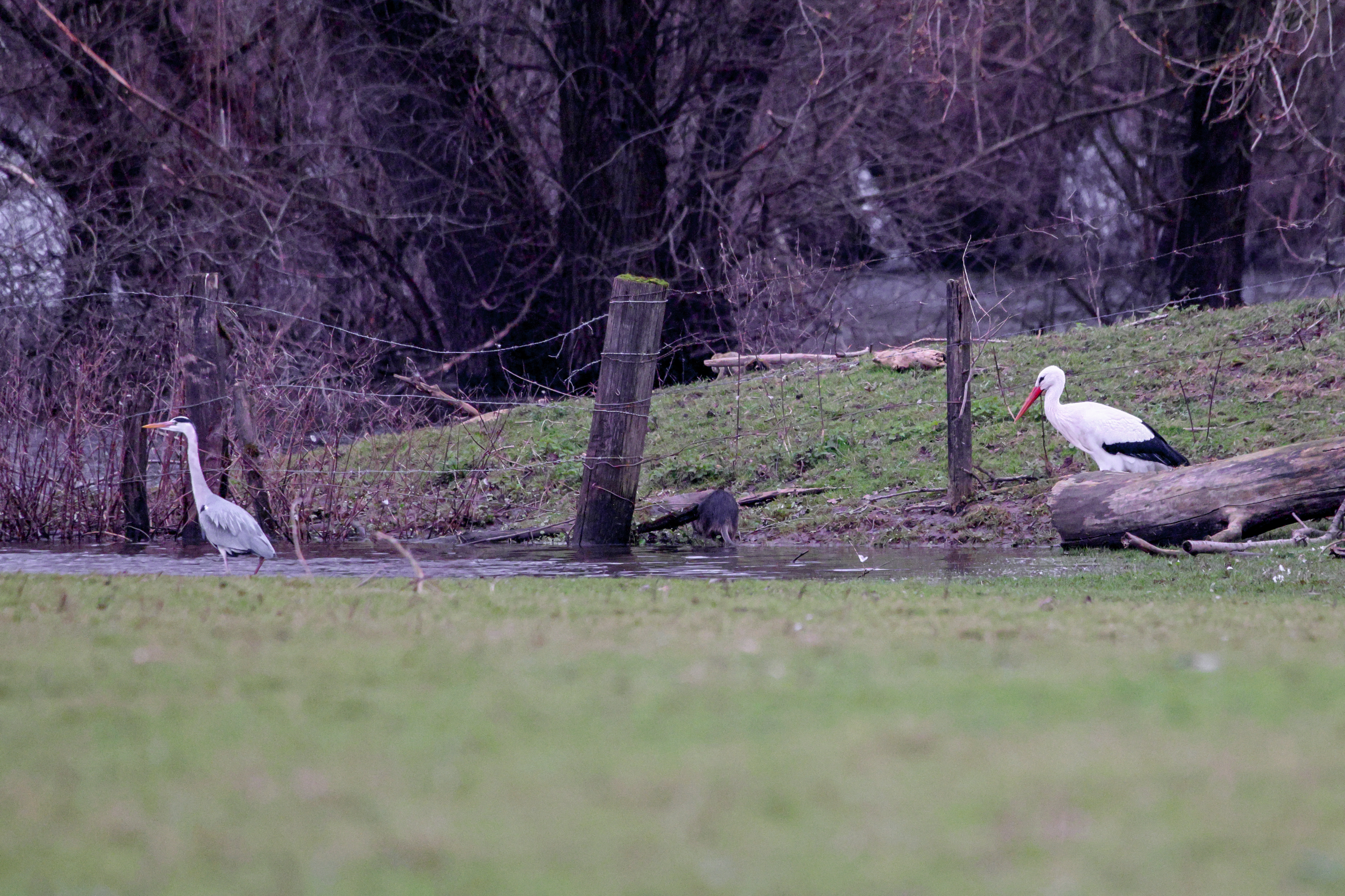 Das Anfang des Winters durch einen Sturm zerstörte Storchenest im Bereich der Beobachtungshütte II muss nun durch das Storchenmännchen eine Etage tiefer, in den Überresten des abgebrochenen Baumes, wieder aufgebaut werden. Sein etwas später eintreffendes Storchenweibchen wird seine Fleißarbeit mit goßer Zuneigung belohnen.