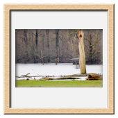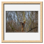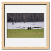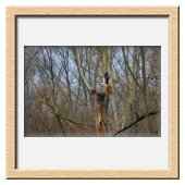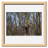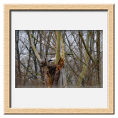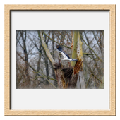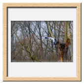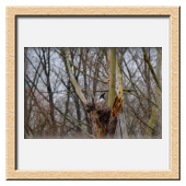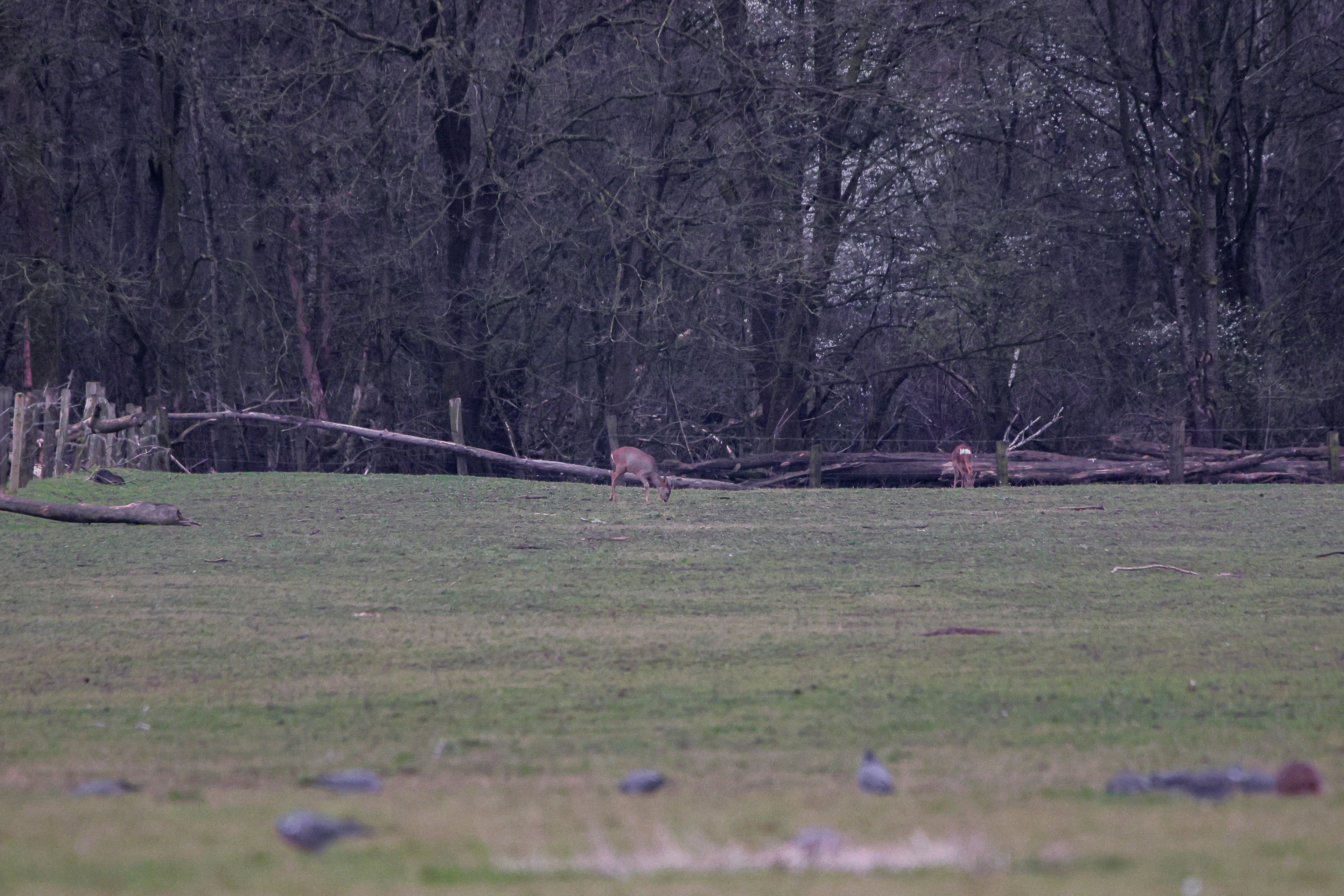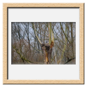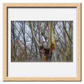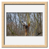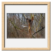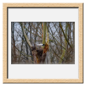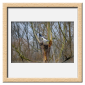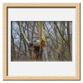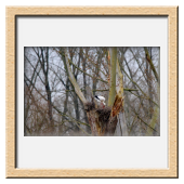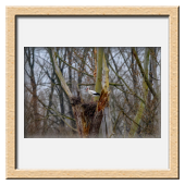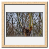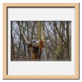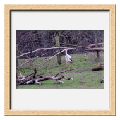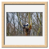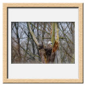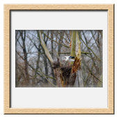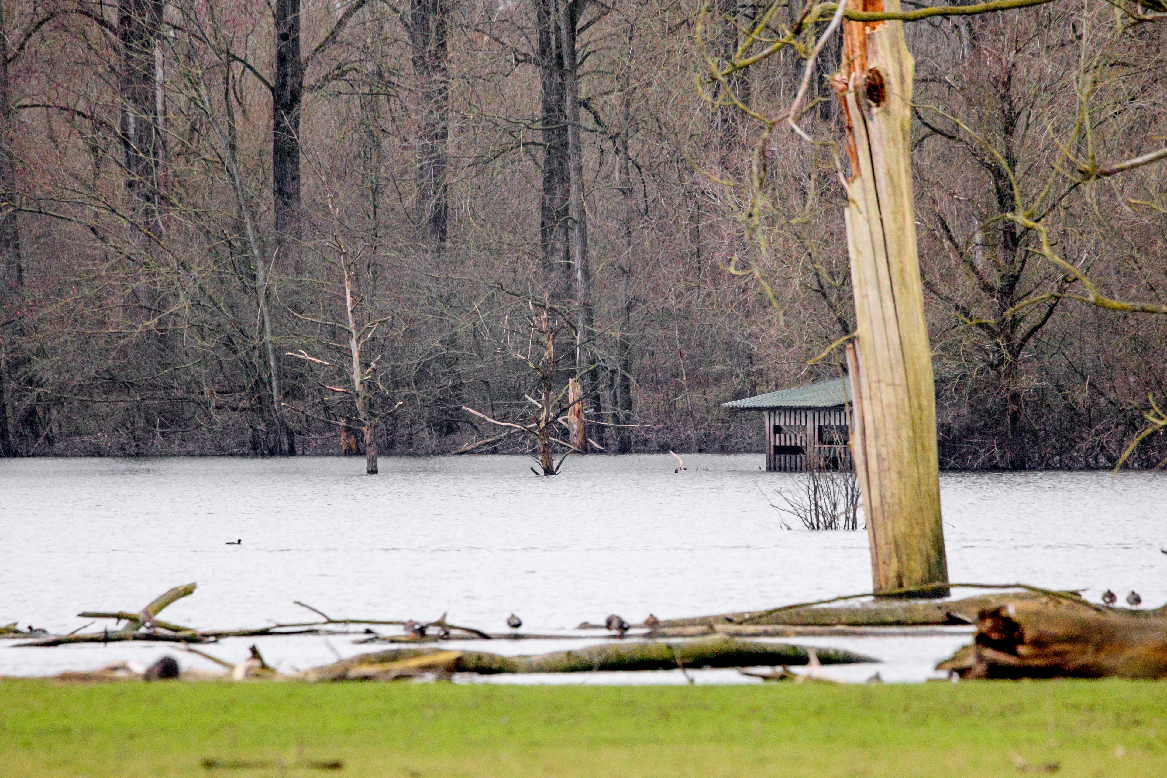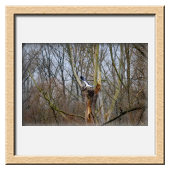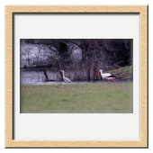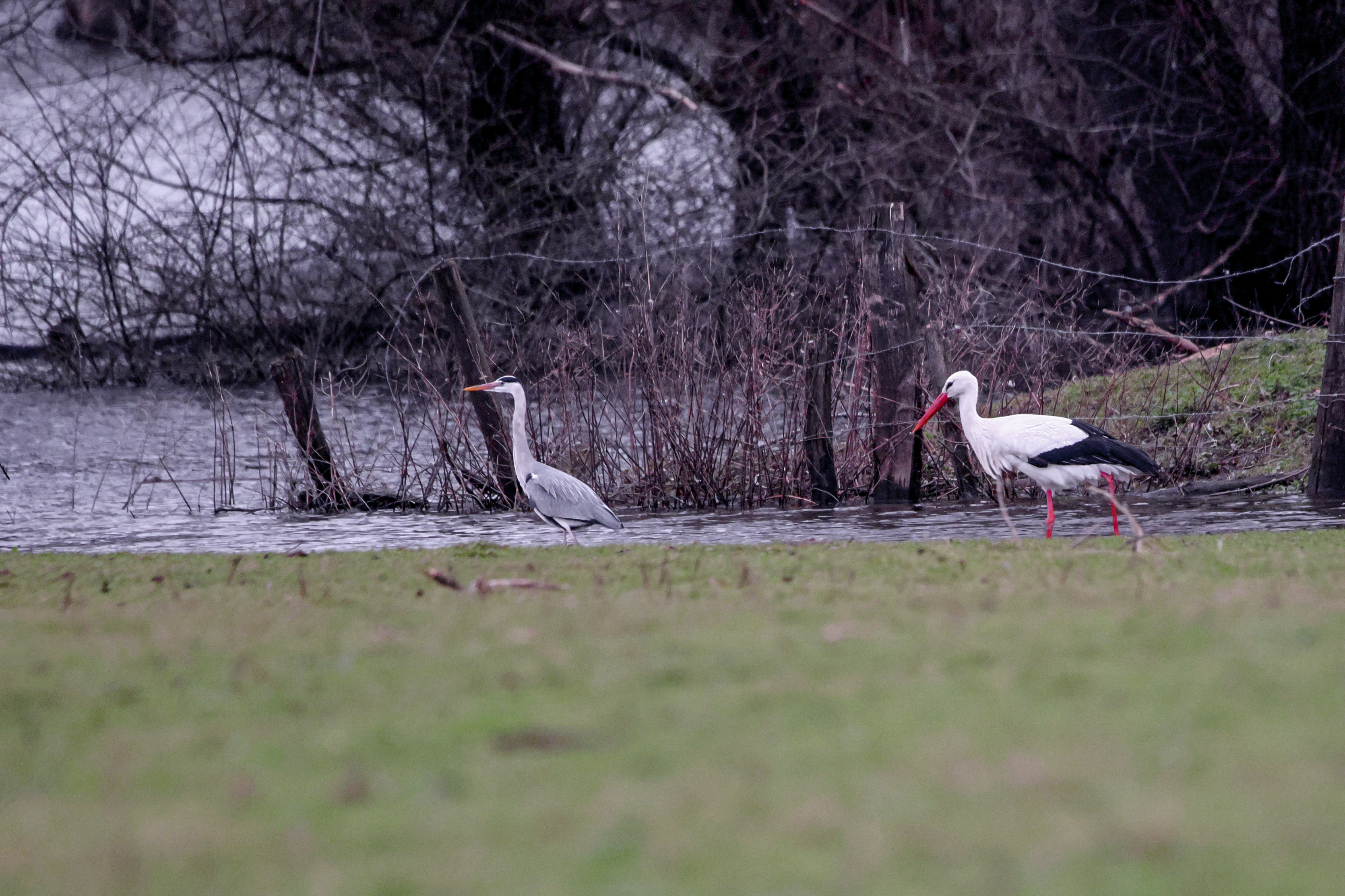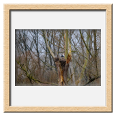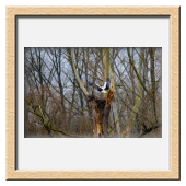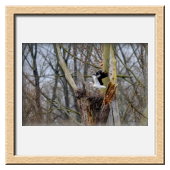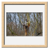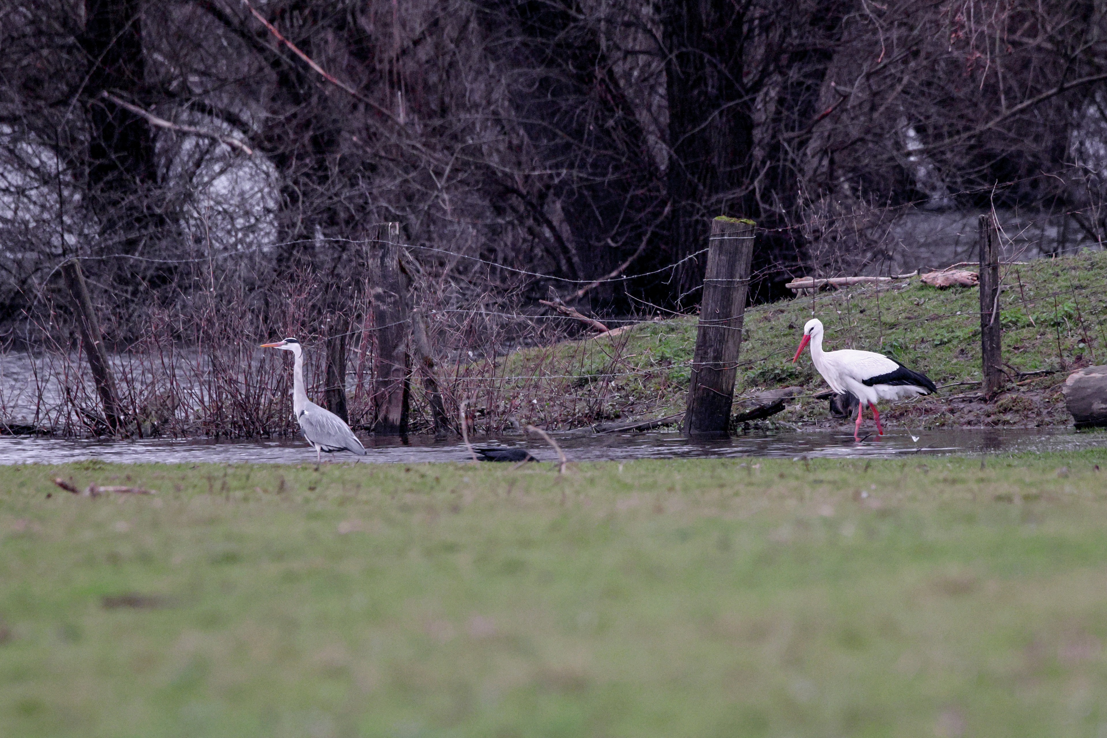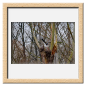 Das Anfang des Winters durch einen Sturm zerstörte Storchenest im Bereich der Beobachtungshütte II muss nun durch das Storchenmännchen eine Etage tiefer, in den Überresten des abgebrochenen Baumes, wieder aufgebaut werden. Sein etwas später eintreffendes Storchenweibchen wird seine Fleißarbeit mit goßer Zuneigung belohnen.