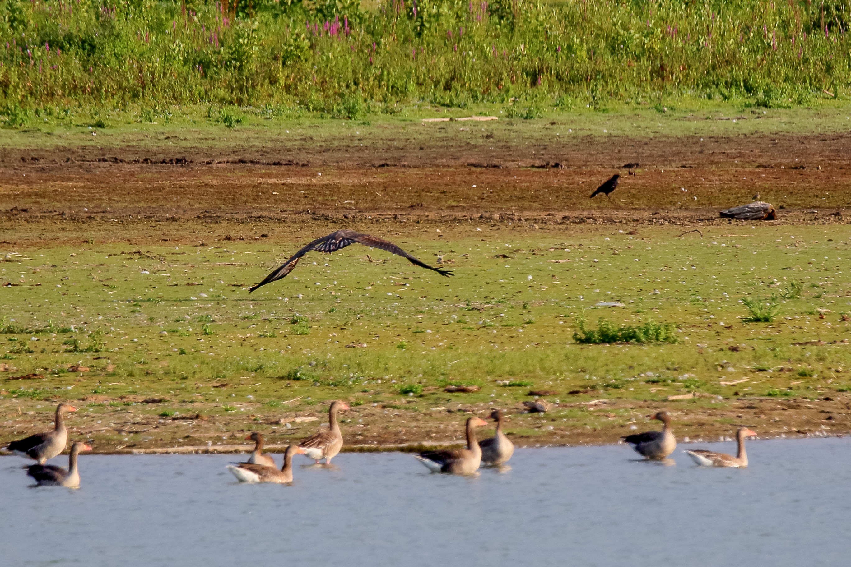 Rohrweihe und junger Rotmilan