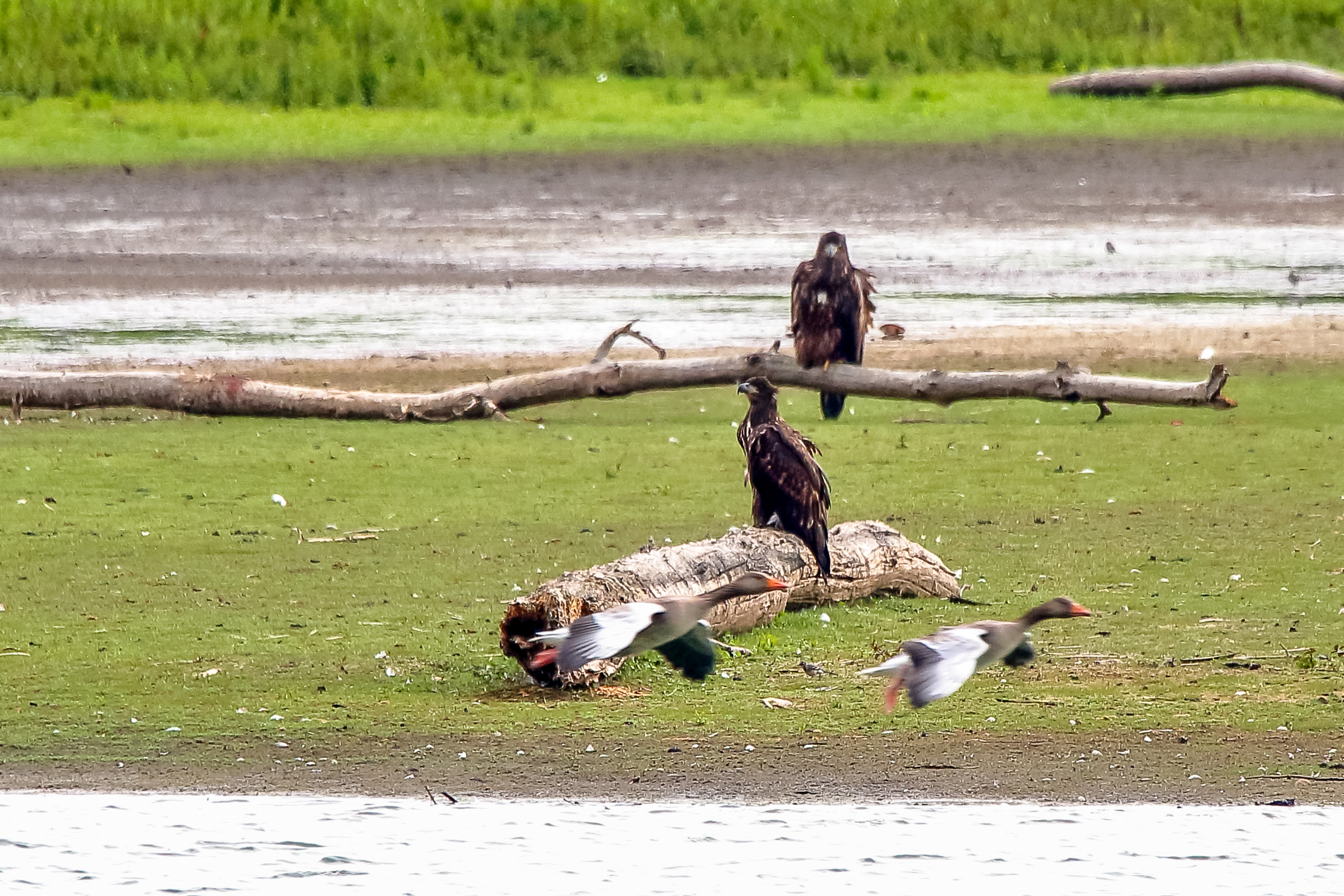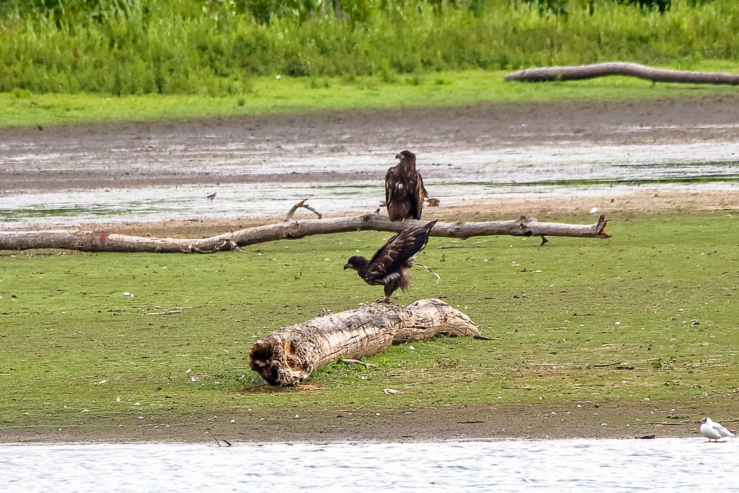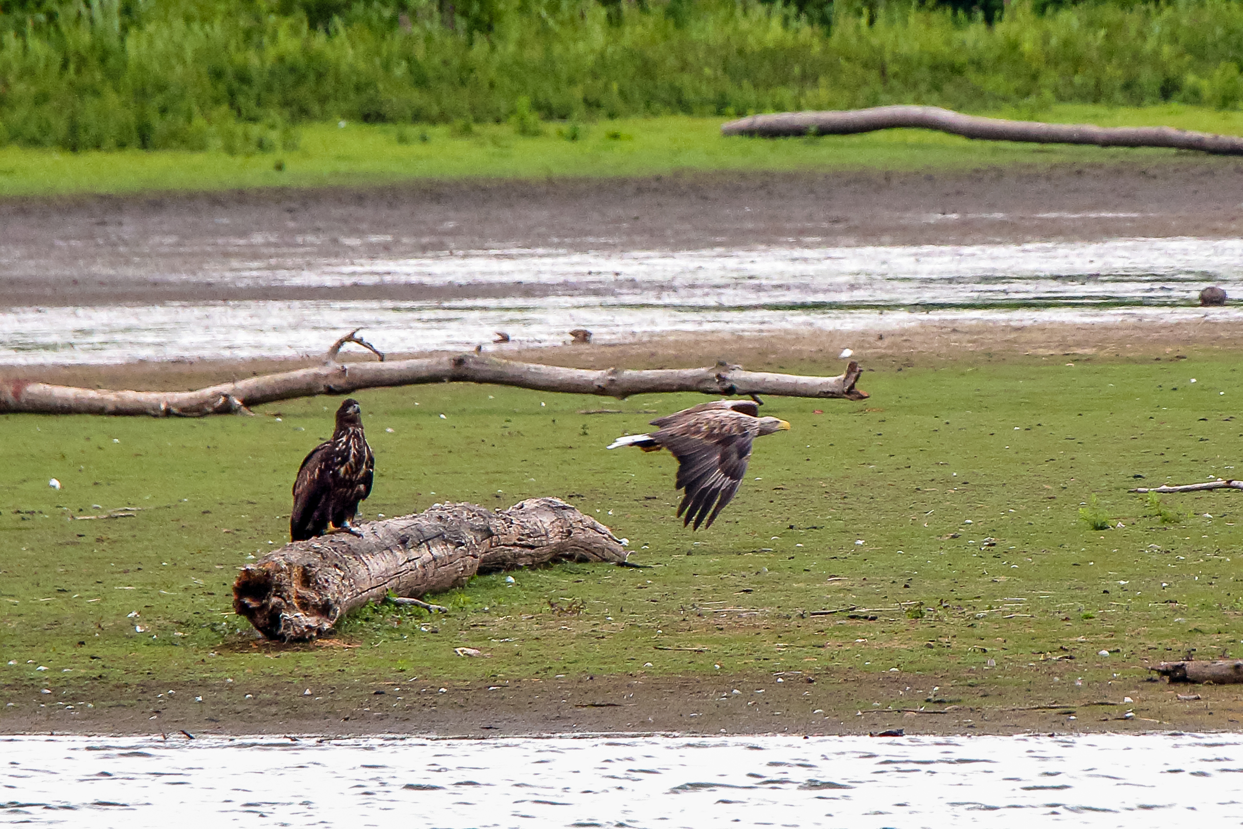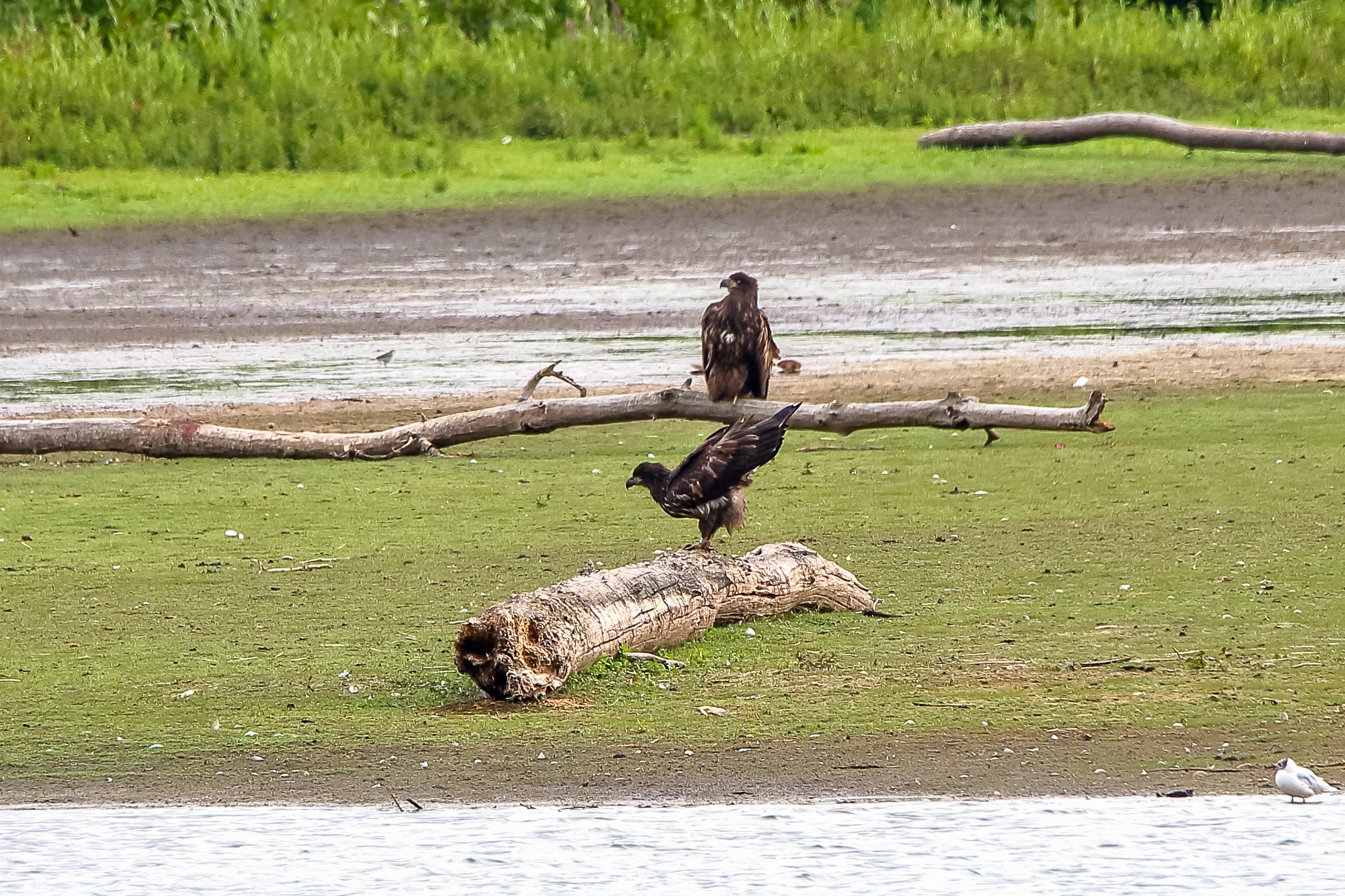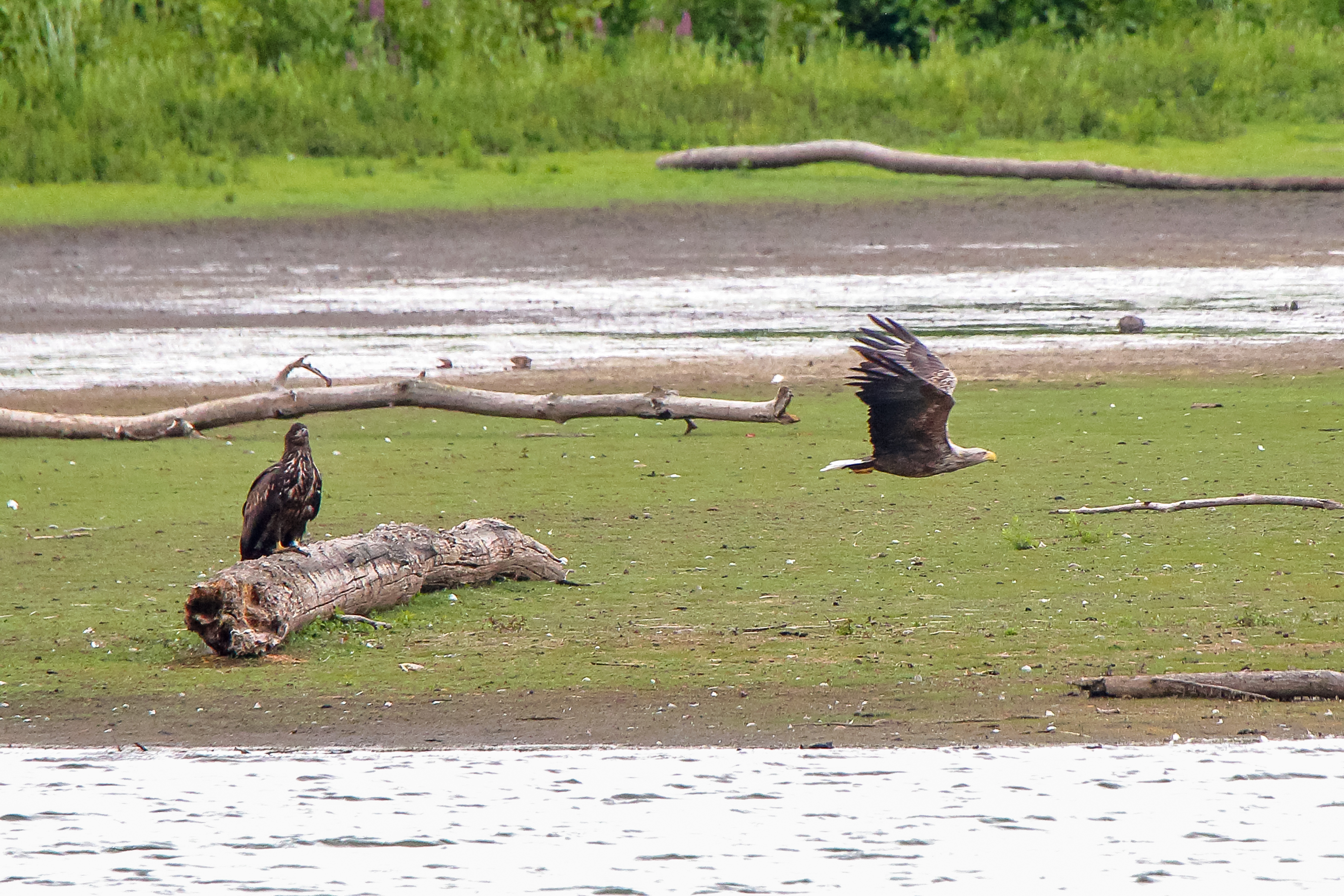 Die jungen Jungseeadler erkunden ihren zukünftigen Futterplatz
