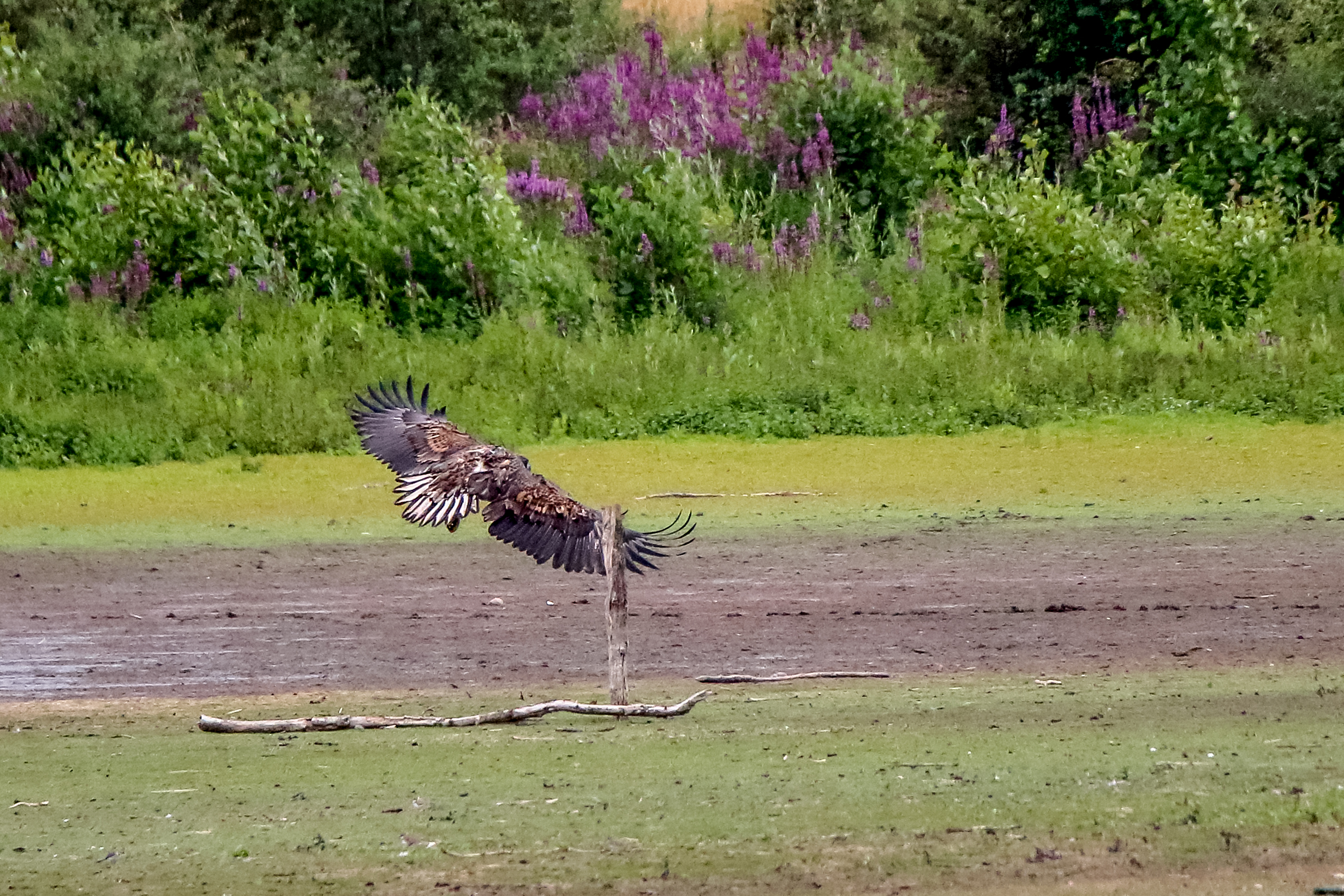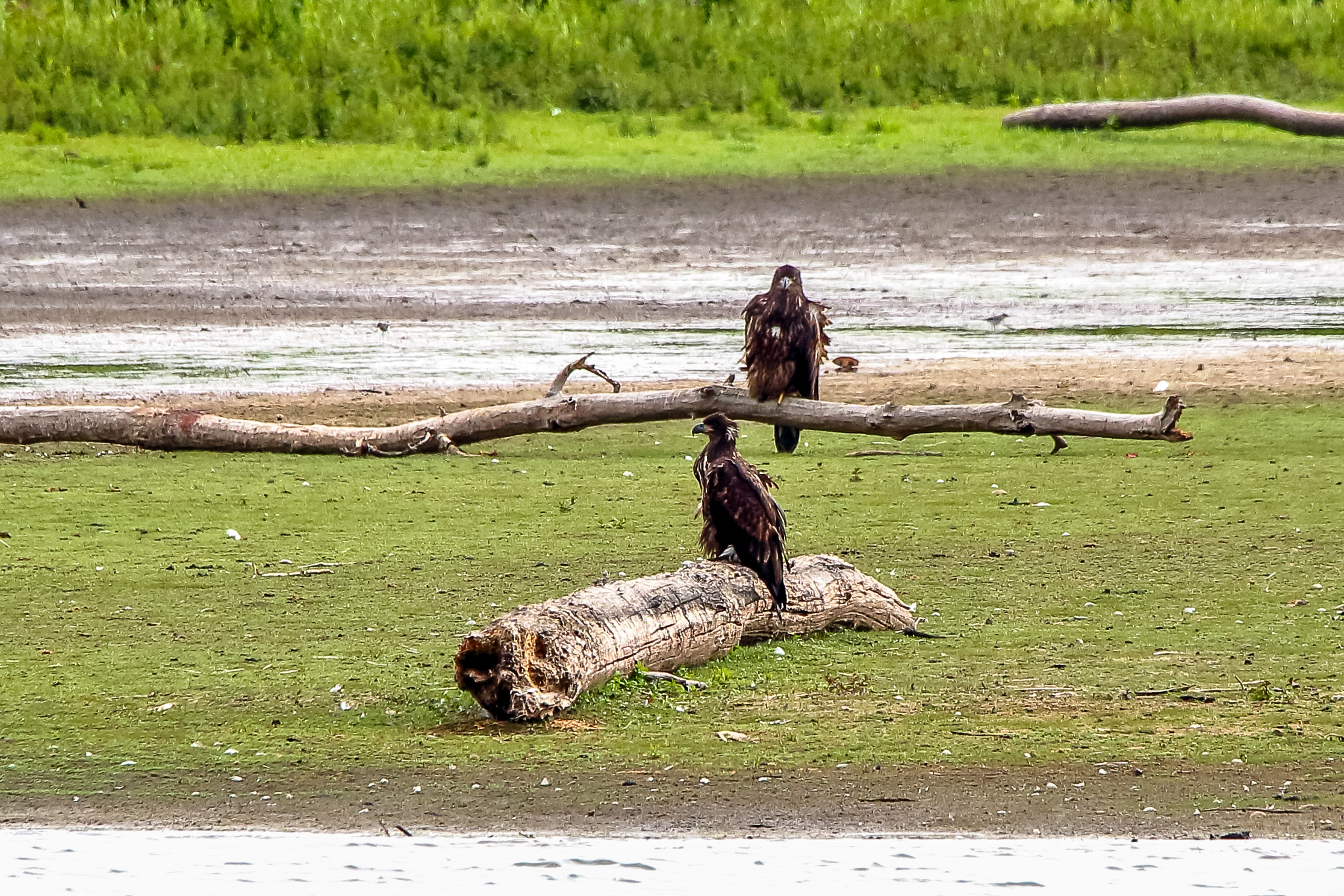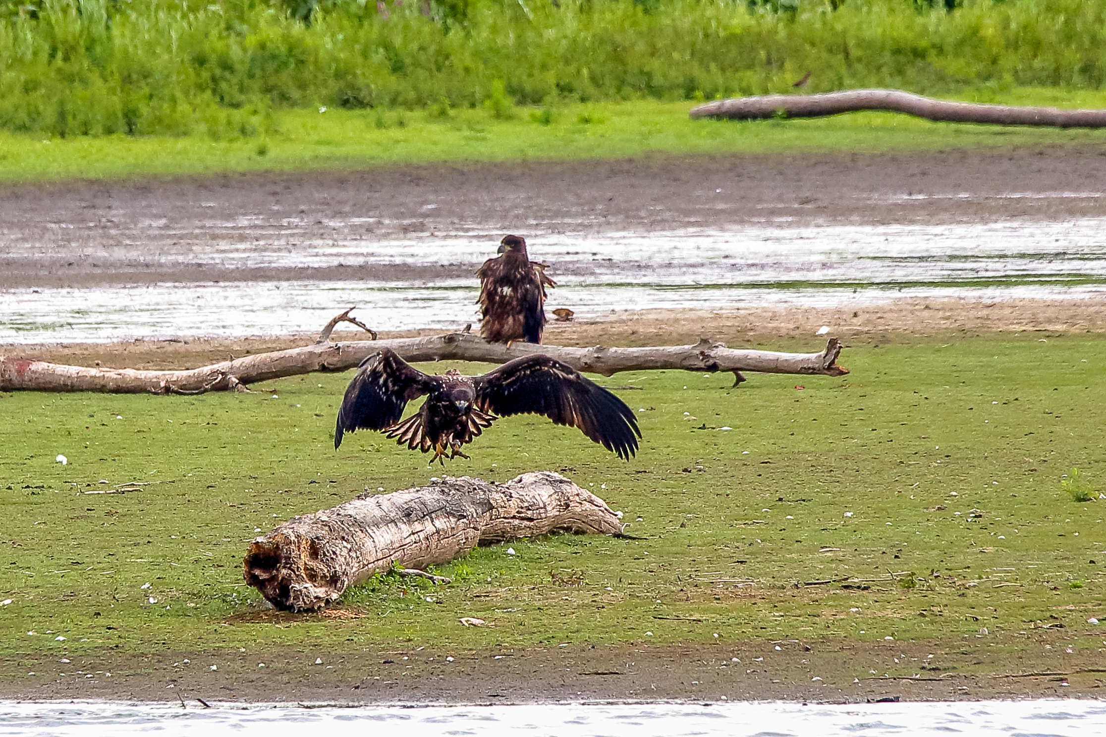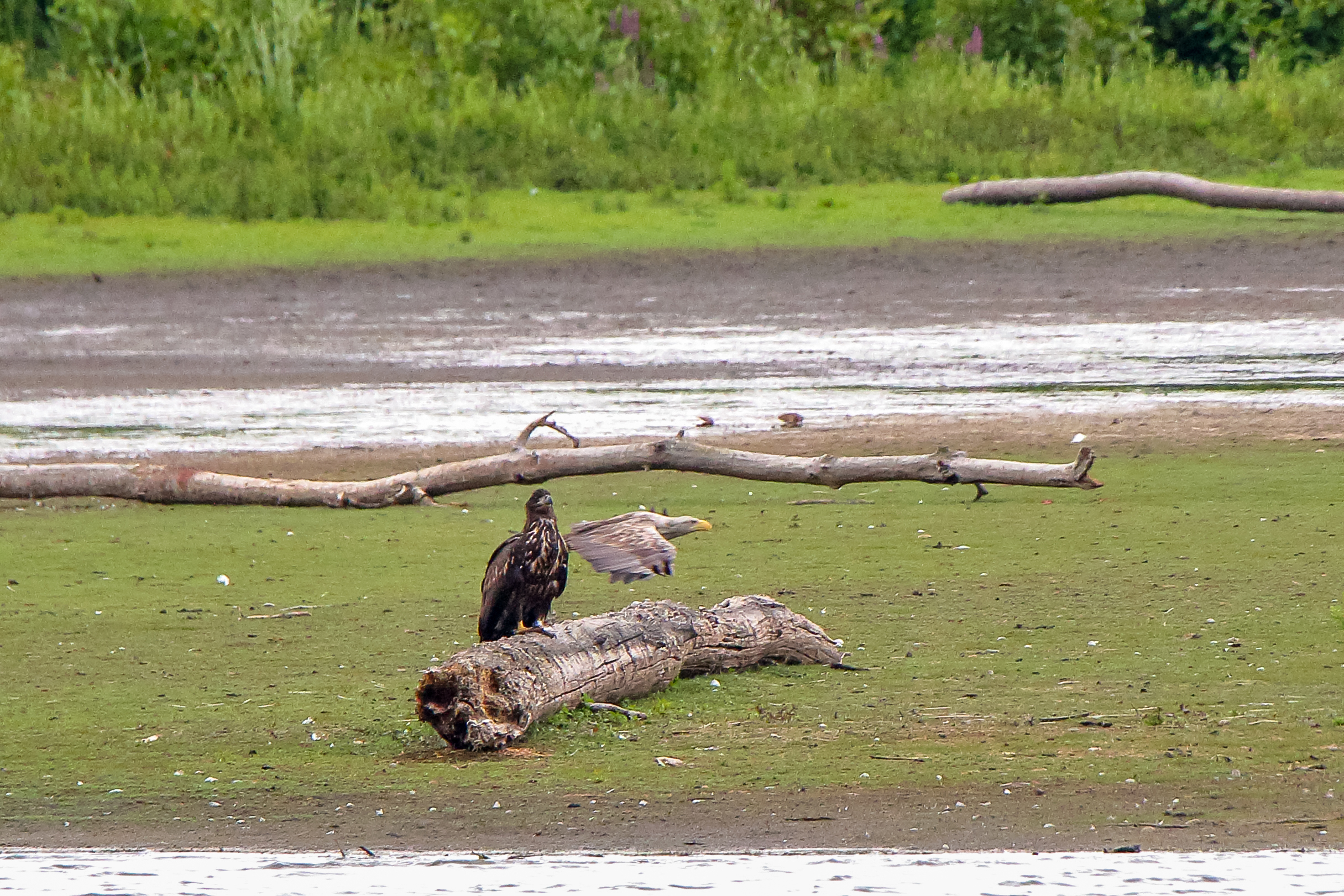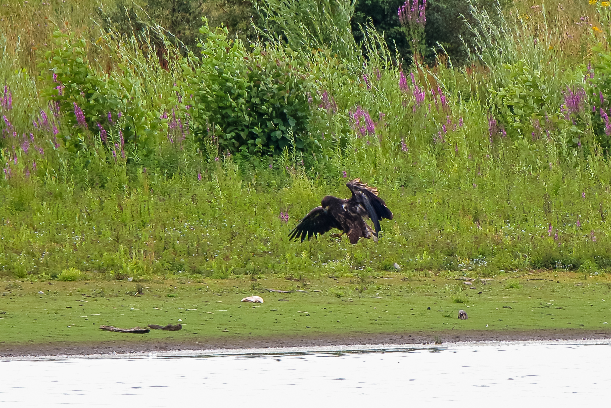 Die jungen Jungseeadler erkunden ihren zukünftigen Futterplatz