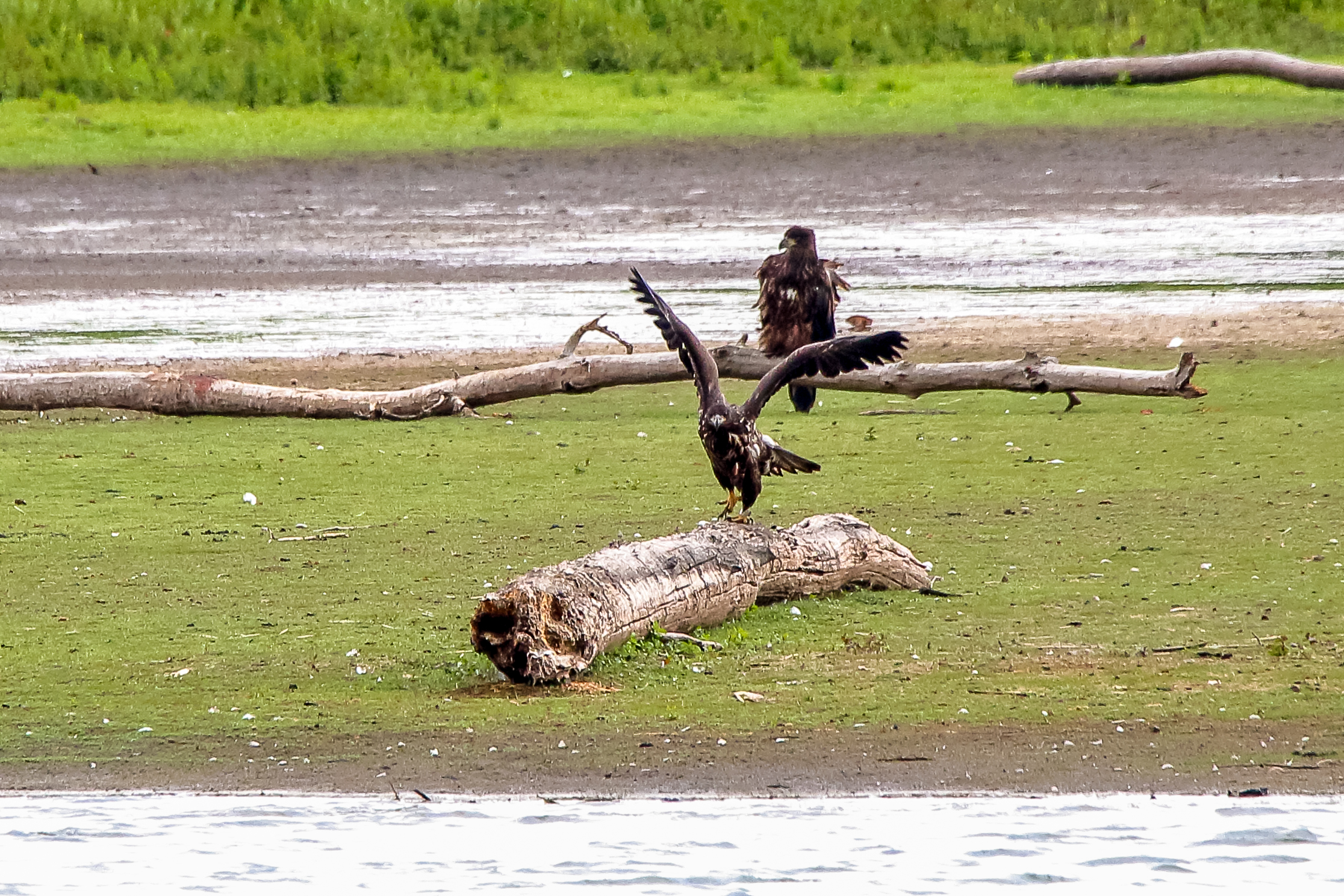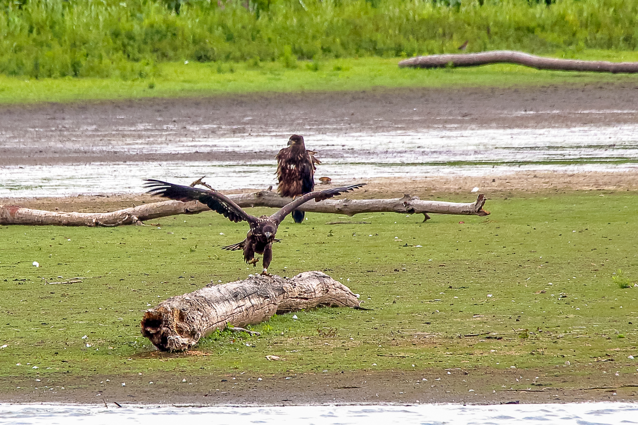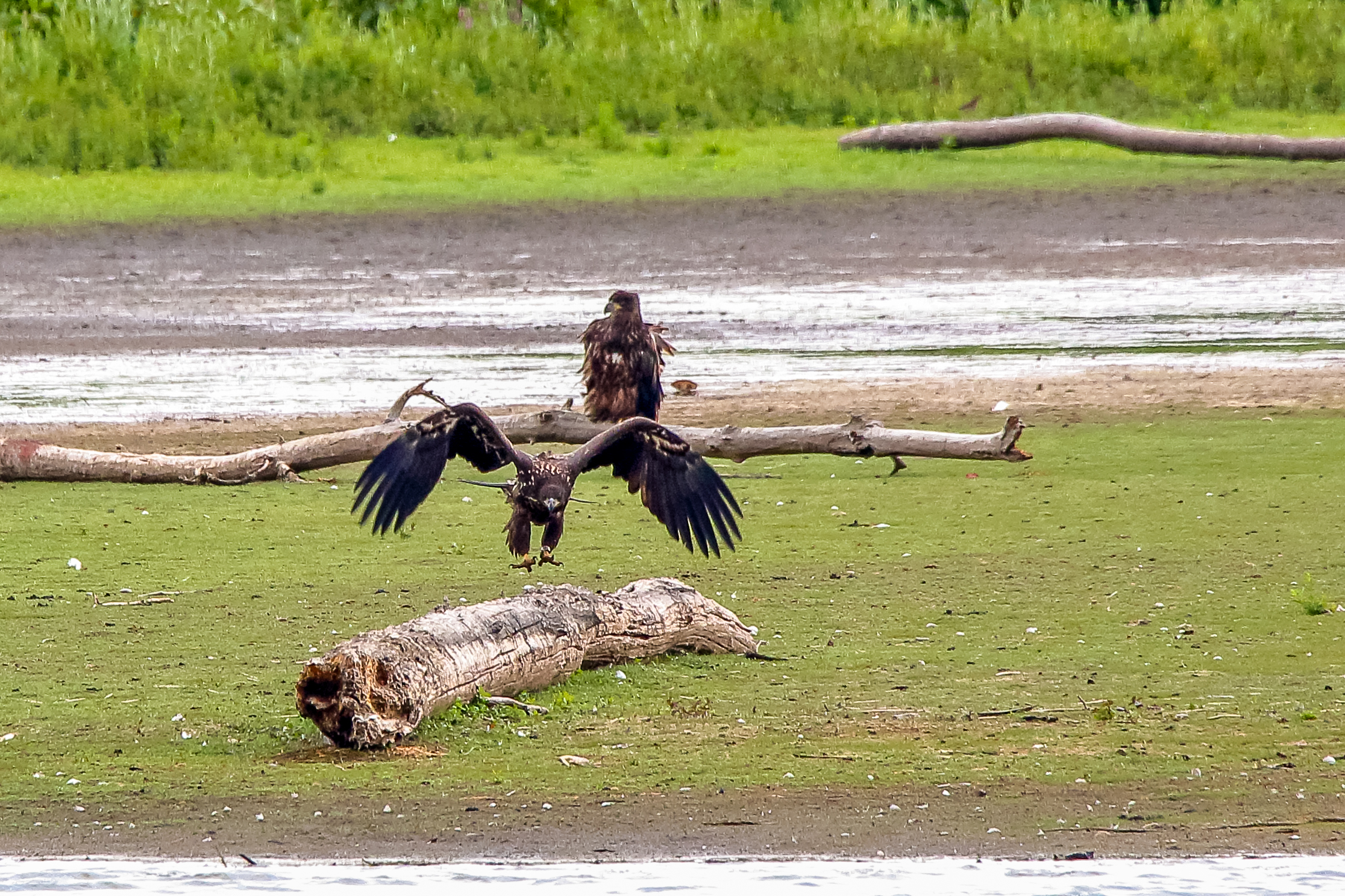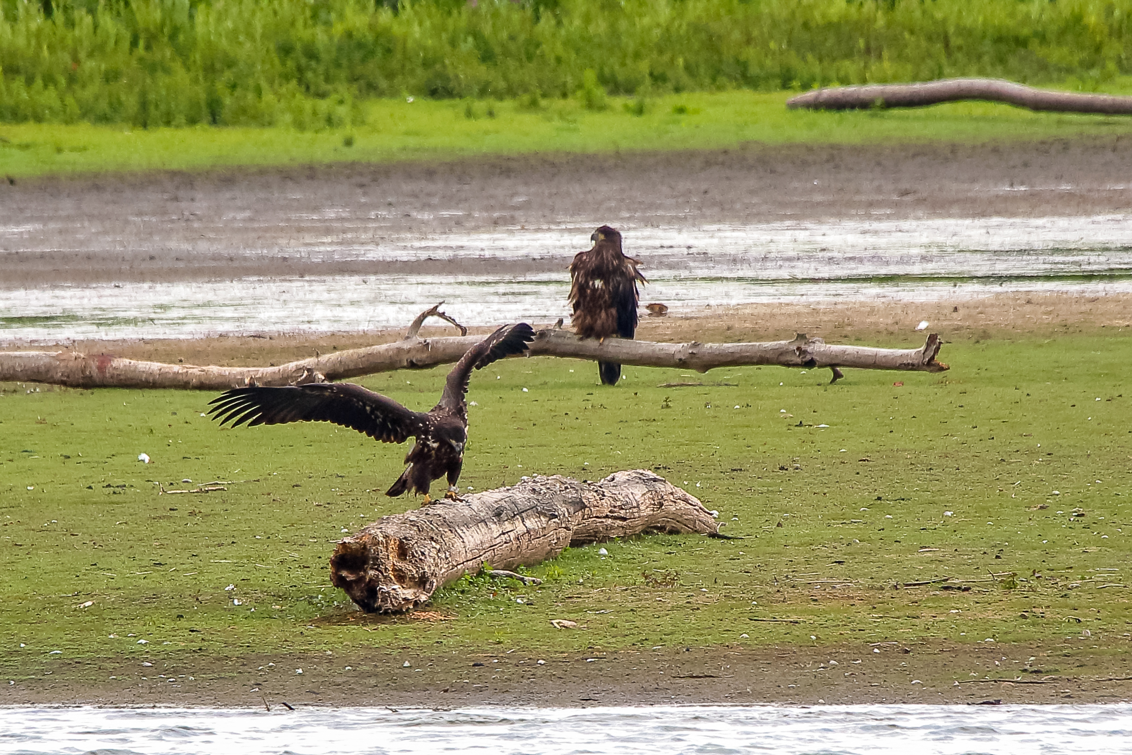 Die jungen Jungseeadler erkunden ihren zukünftigen Futterplatz