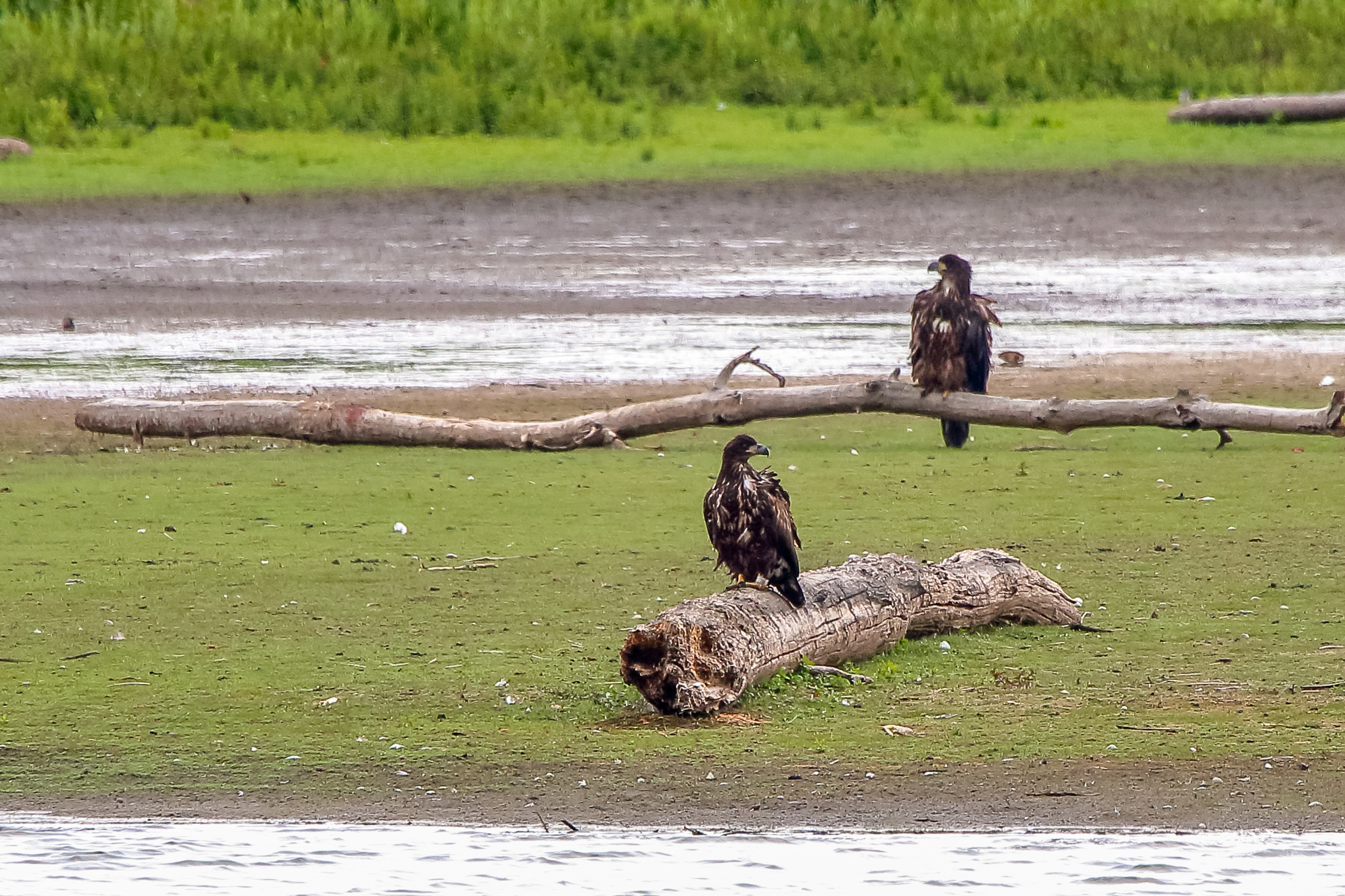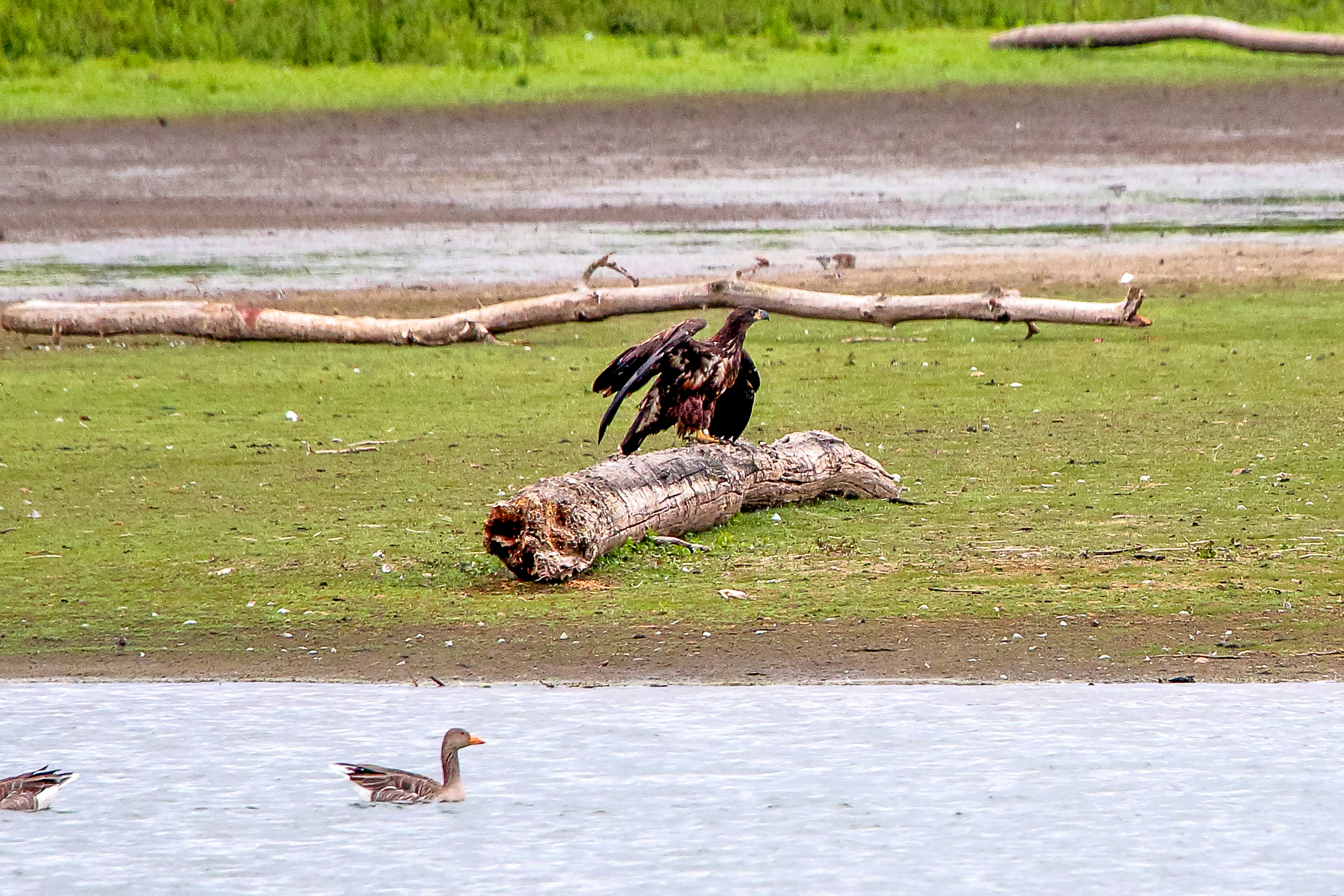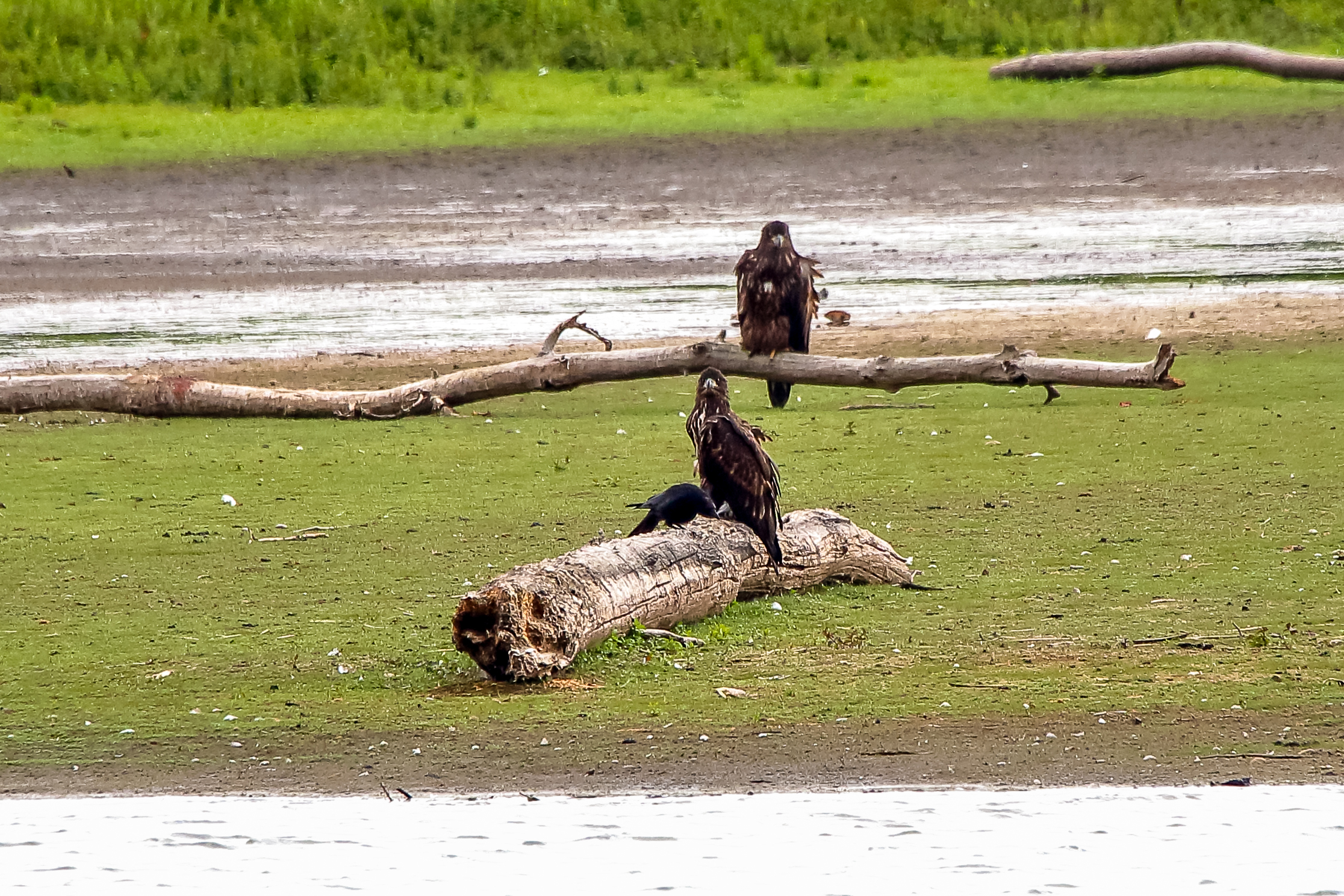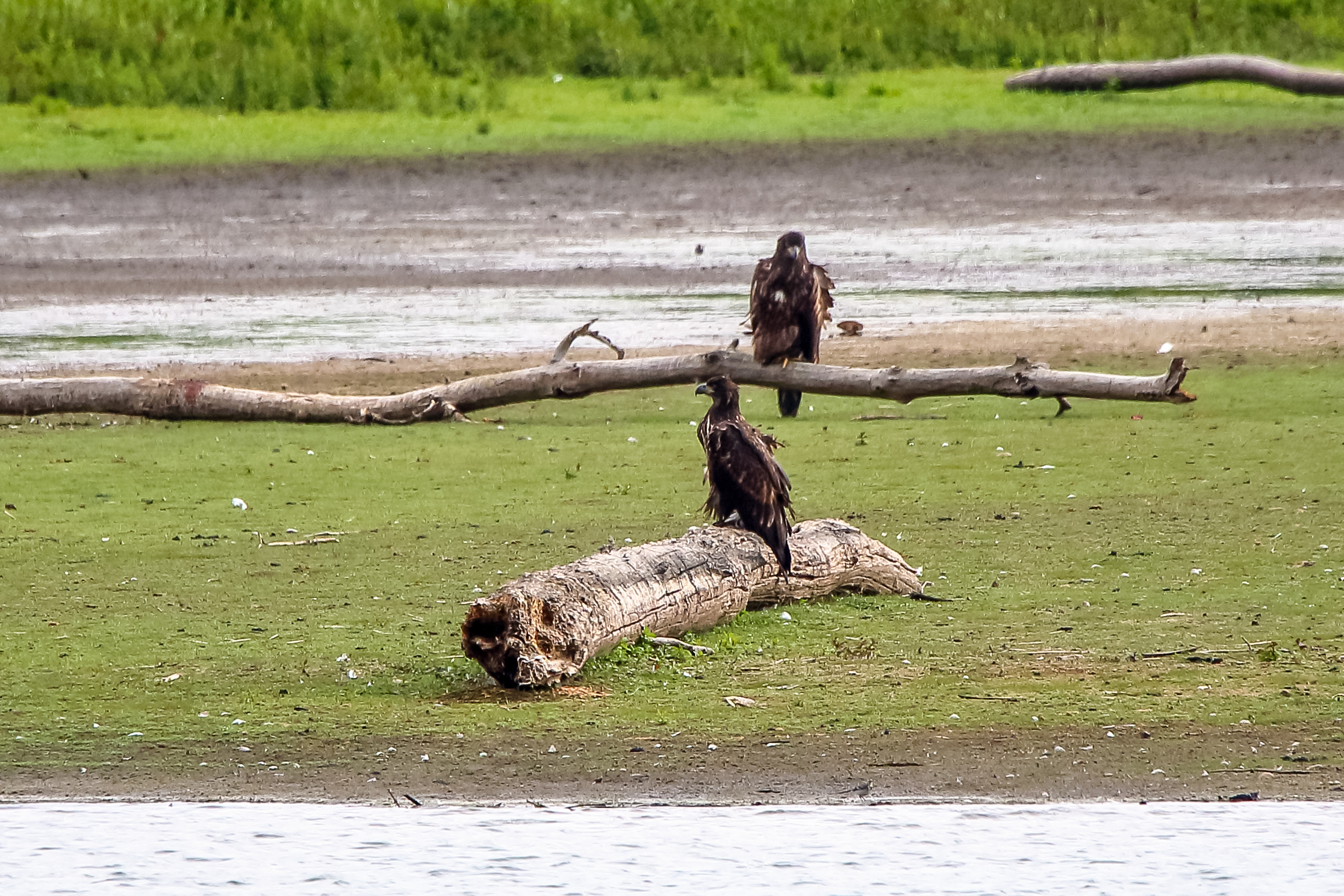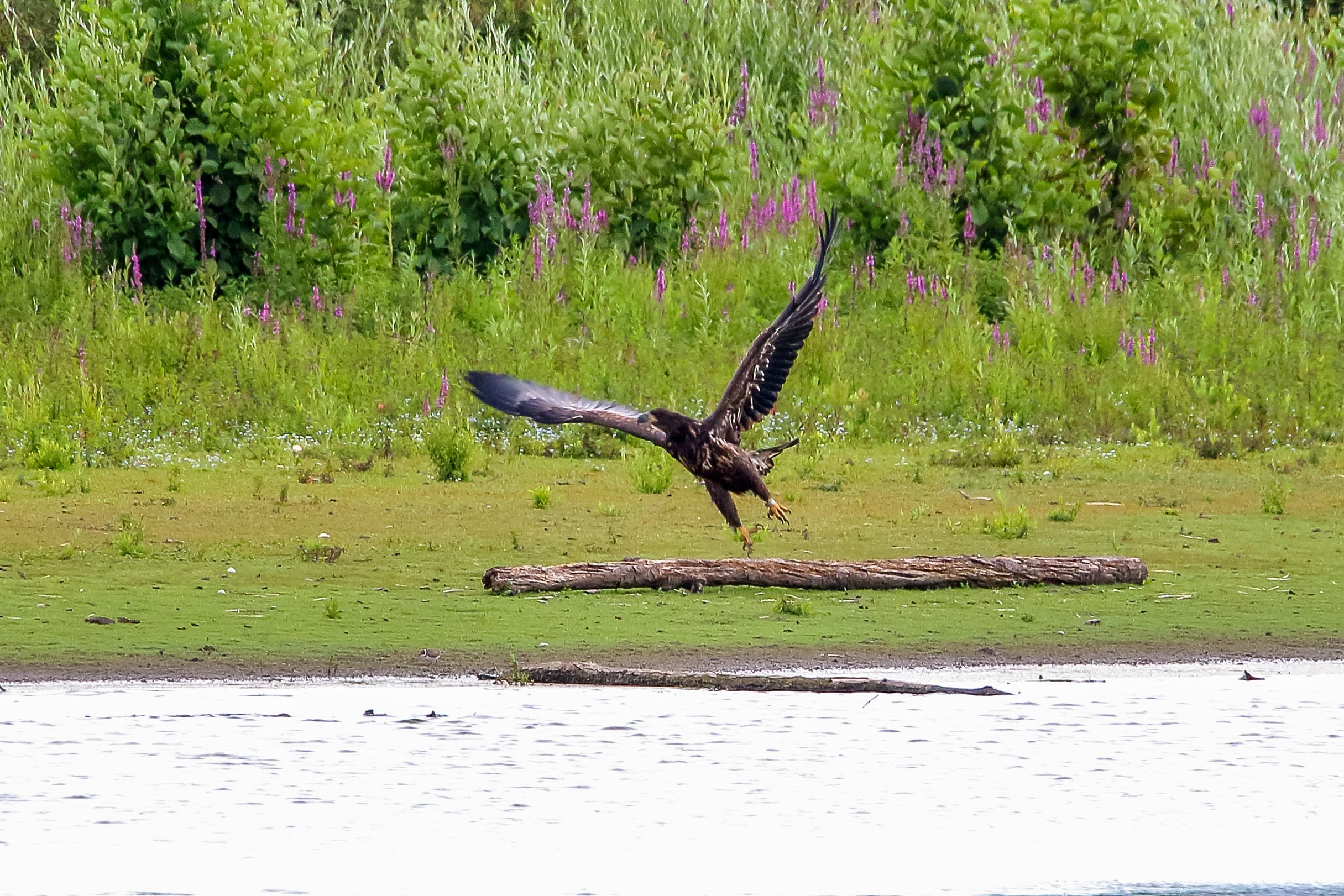 Die jungen Jungseeadler erkunden ihren zukünftigen Futterplatz