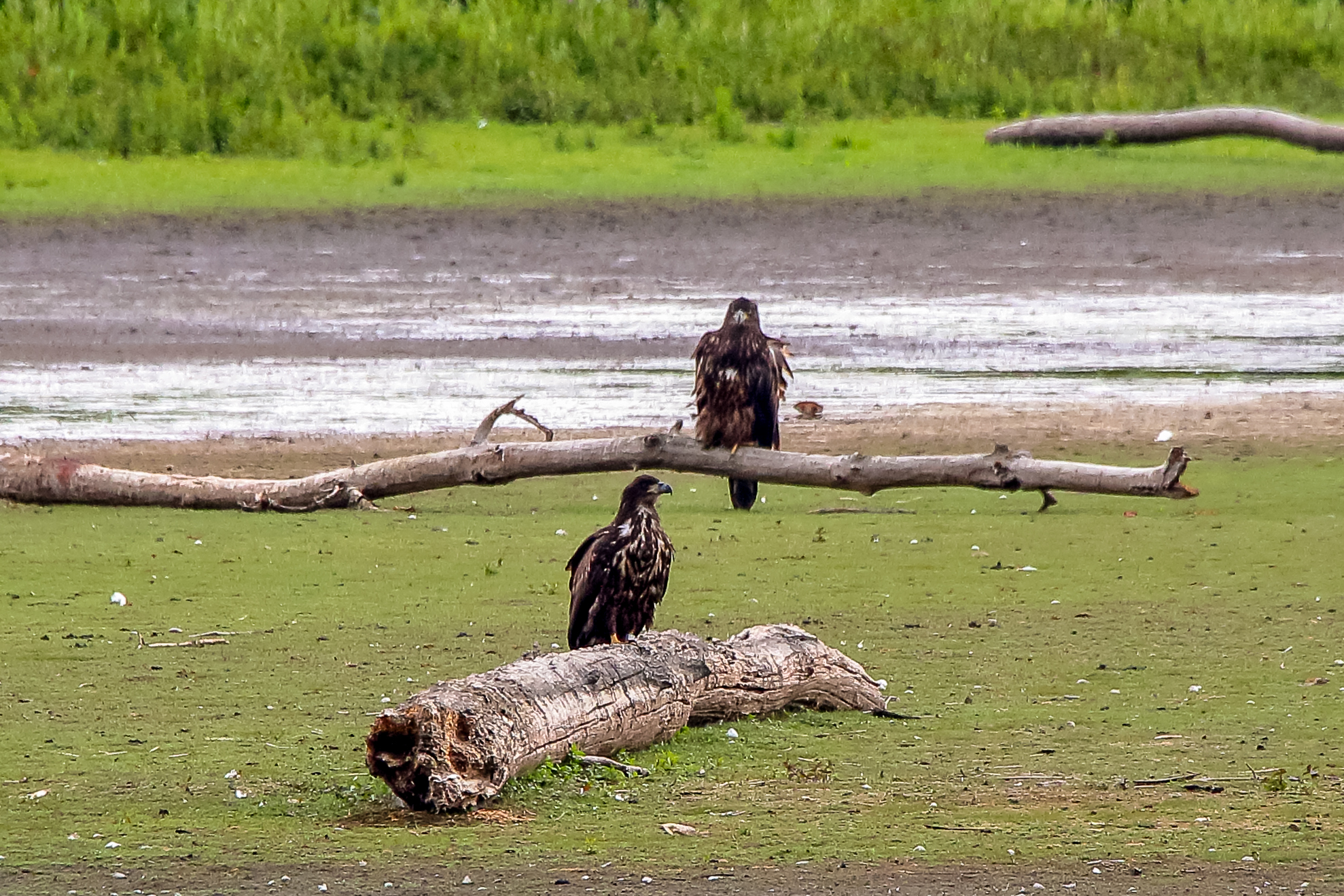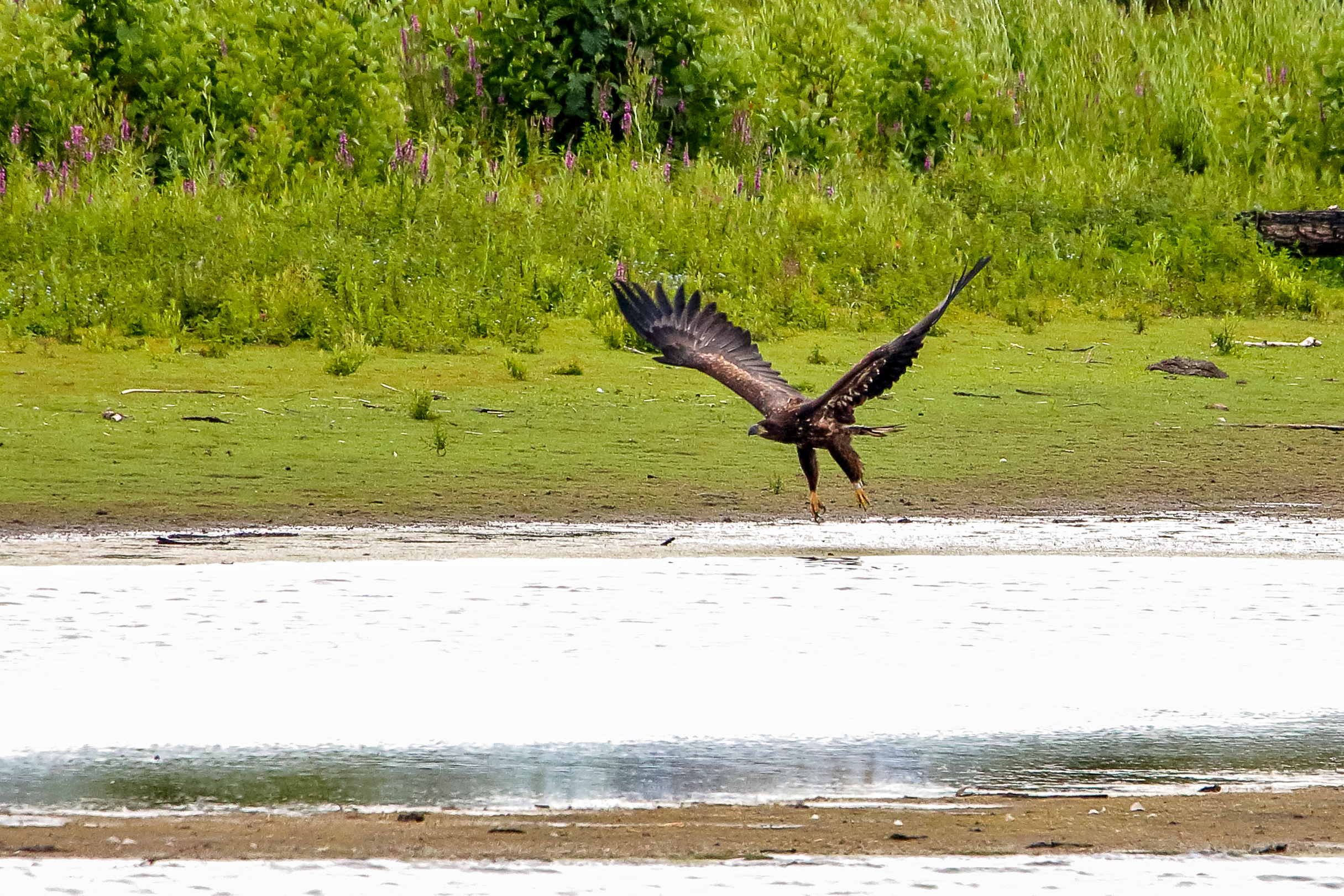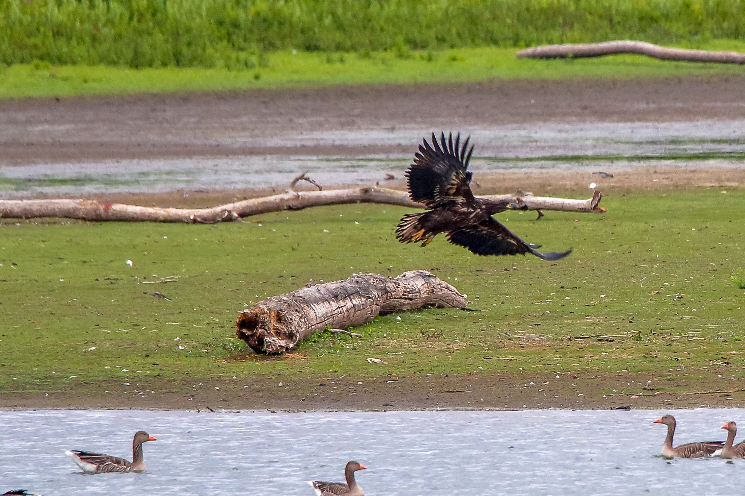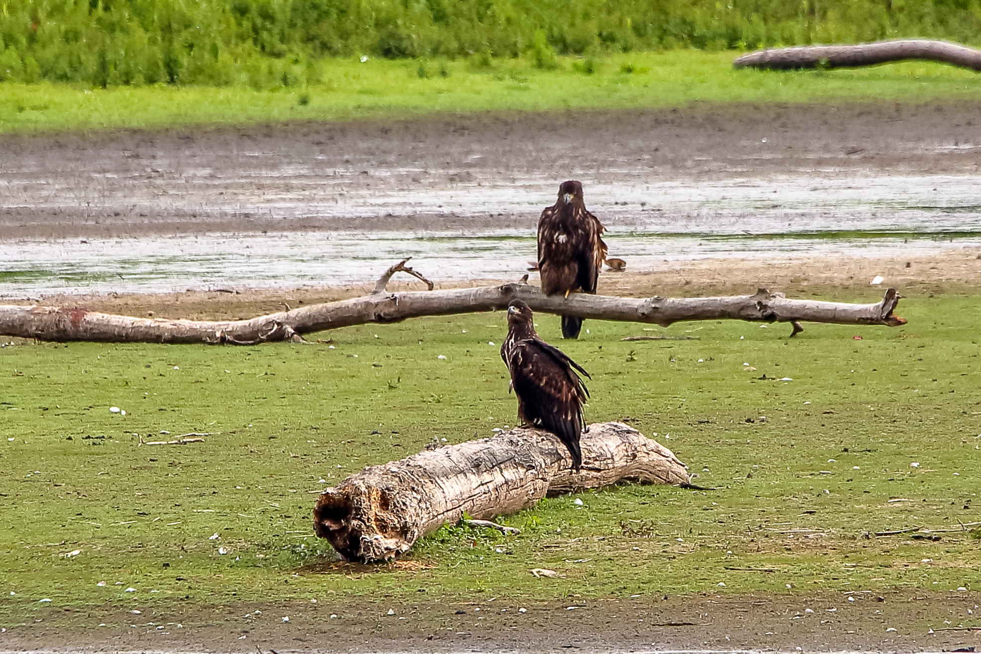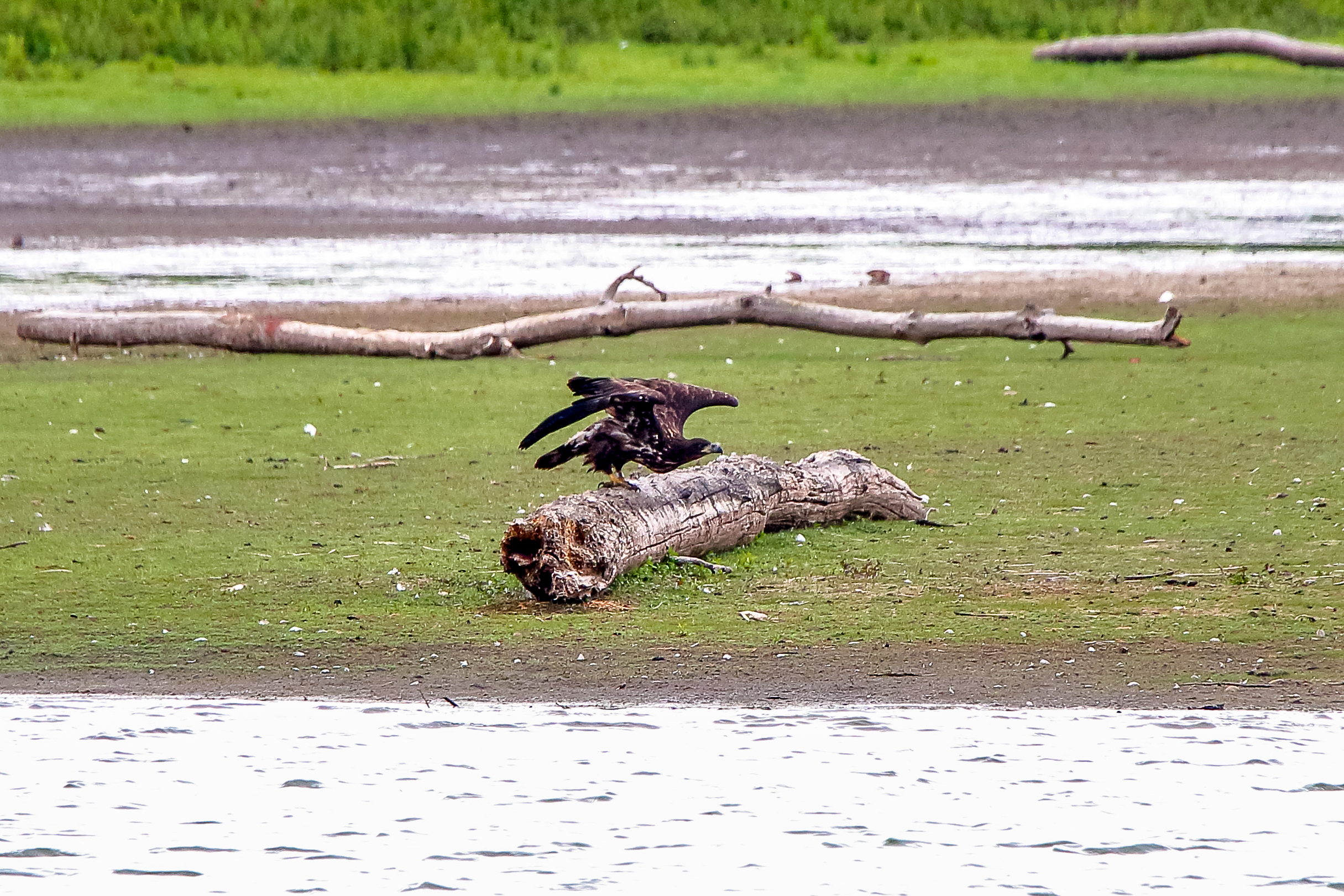 Die jungen Jungseeadler erkunden ihren zukünftigen Futterplatz